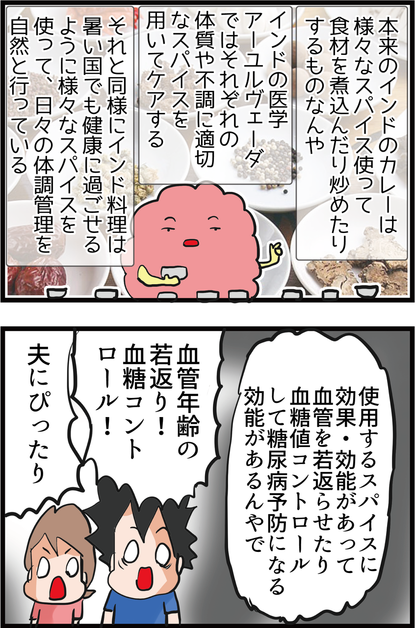 本来のインドのカレーは食べる漢方と呼ばれるほど、体にいいものだったんだね