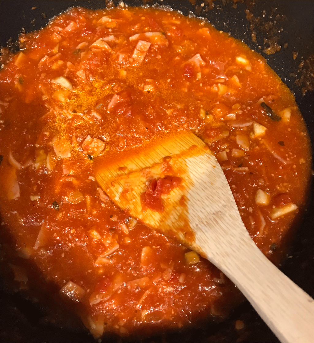 糖質オフトマトソースパスタ(マッシュルーム石づきとベーコン入り)