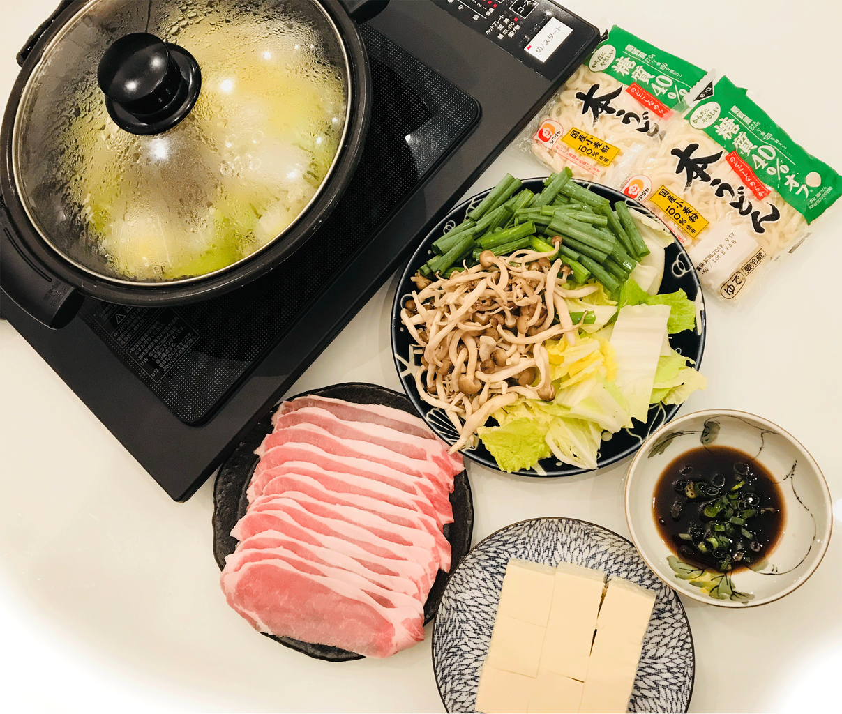 鍋(白菜、九条ネギ、しめじ、豆腐、豚肉)