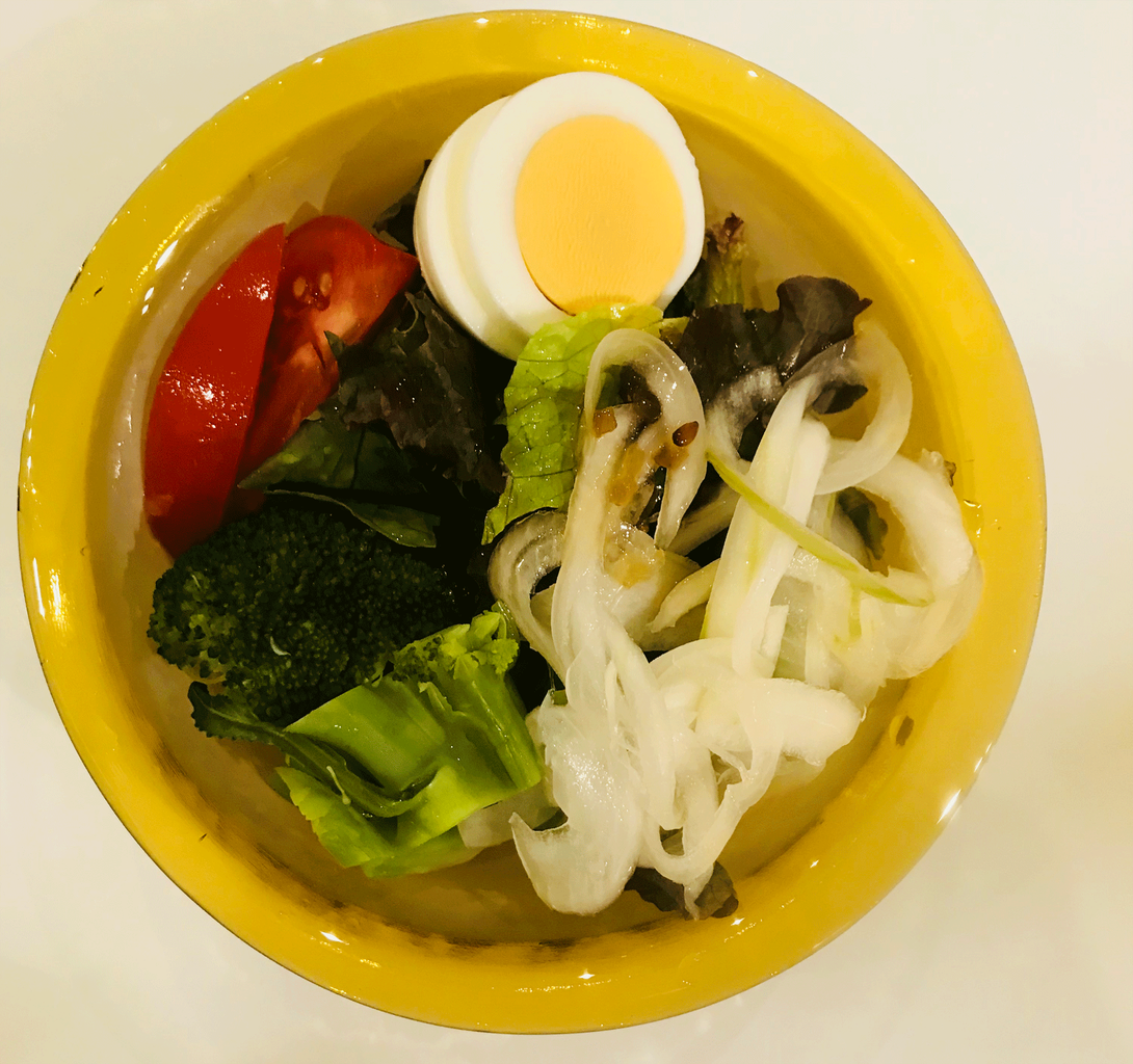 サラダ(レタス、キャベツ、トマト、ゆで卵、酢玉ねぎ)