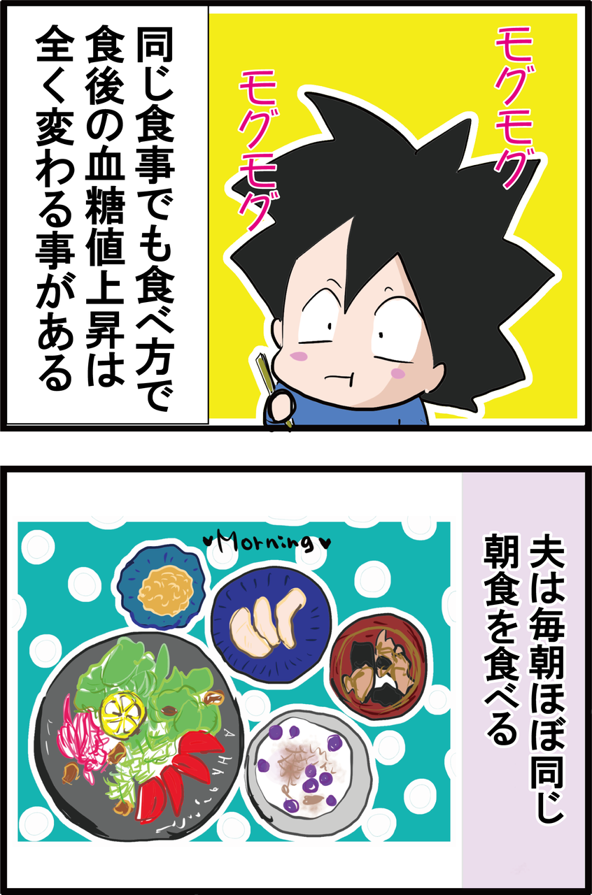 ちょうど今日、長女の学校イベントで朝とても早かったので急いで食べたら、いつもは180mg/dl以内で収まっている食後血糖値が同じメニューで200mg/dlオーバーまで上がってしまった