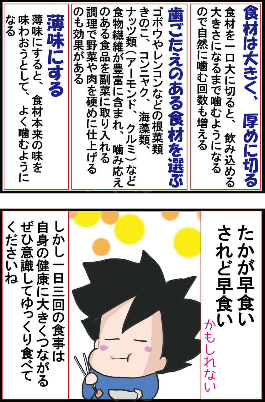 参考サイト:早食いが原因で糖尿病や肥満に よく噛んで食べるための6つの対策 | ニュース・資料室 | 糖尿病ネットワーク