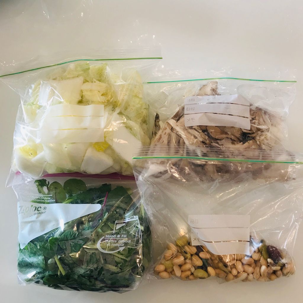 白ネギも薄切りでキッチンパックへいれておくと火を入れる料理ほぼすべてに使えますよー