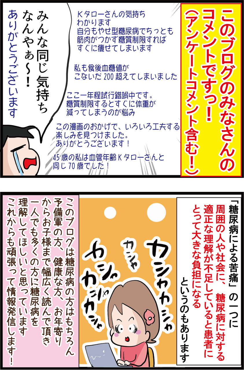Kタローさんと同じく病院の糖尿病患者の集いにも参加することもなく、孤独な戦いと思っていました。