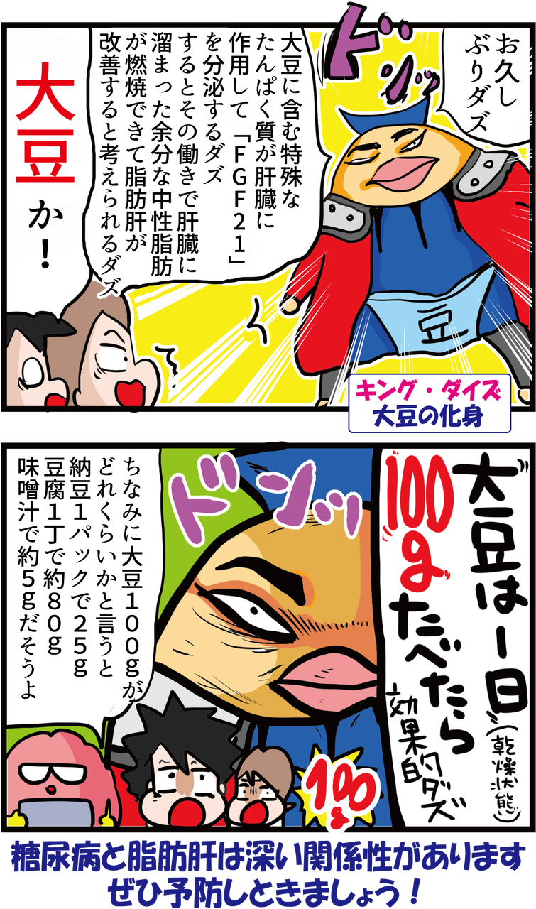 つまりほとんど油とアルコールをとらせなかったので、それだけでも肝臓は良くなっていたのではないかと思われます。これがいつもどうり晩酌やラーメンなどもとった上で大豆も取り入れたわけではないのです。結局は何をどれだけ食べるのか?量を考えて食べないといけないんですよ。