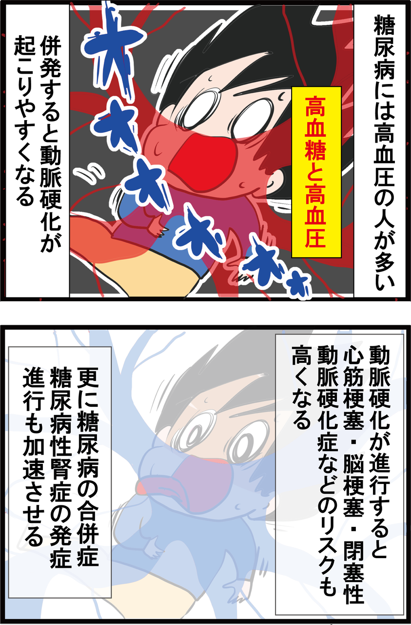 糖尿病の人の40~60パーセントが高血圧をもっているという話です