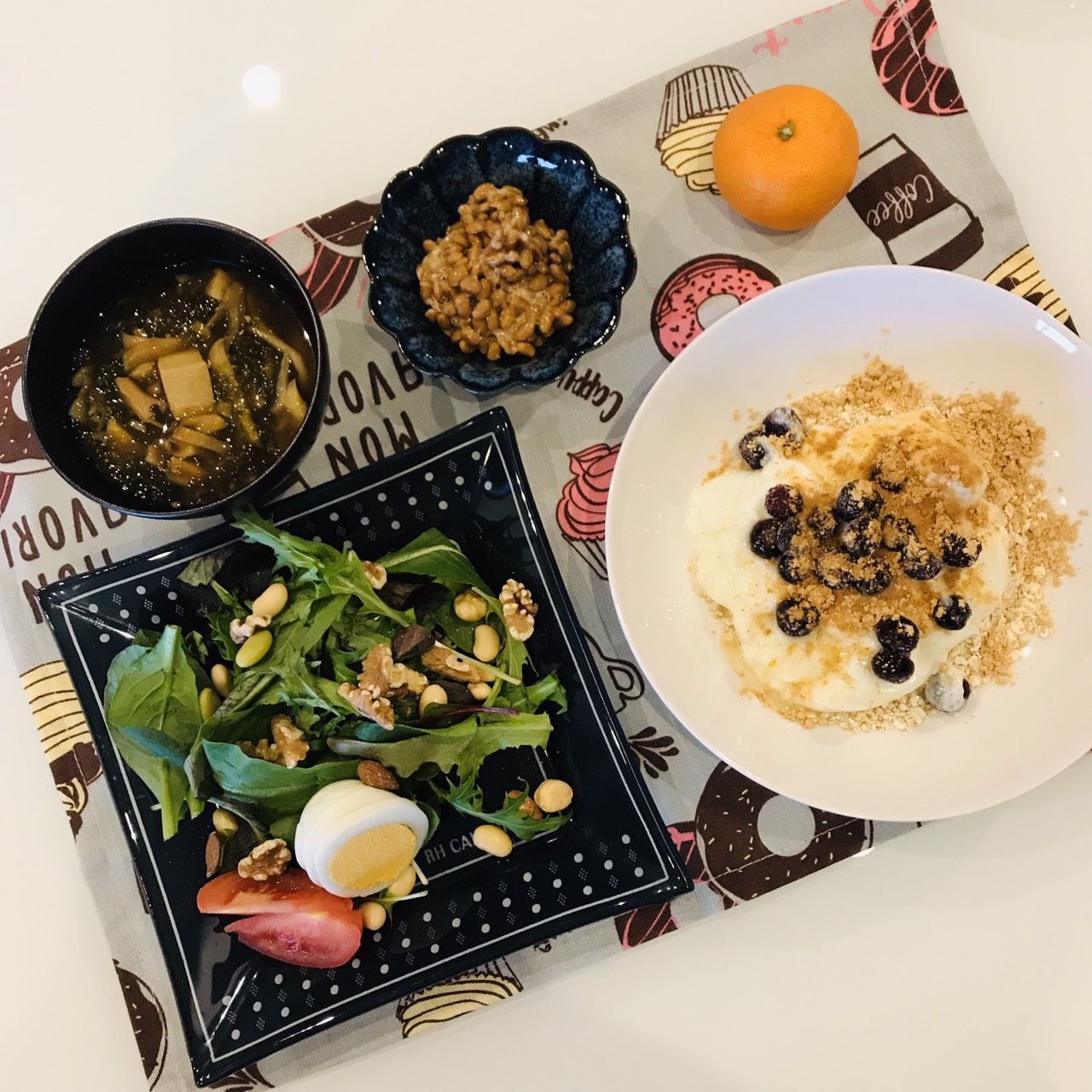 ●サラダ(ベビーリーフ、ゆで卵、ナッツ、トマト、大豆)