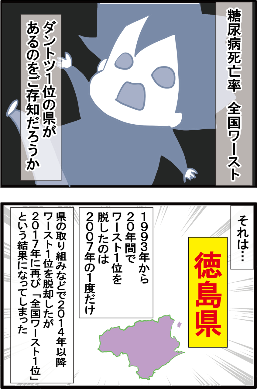 ちなみに徳島県が糖尿病死亡率が全国ワースト1位の理由が、甘党文化や車の稼働率の高さなど言われています