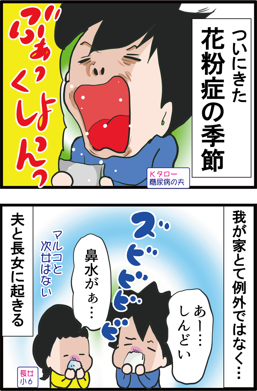 花粉症苦しいですよ。私は花粉症歴31年、糖尿歴20年の強者です。内服薬2種類とステロイドの目薬で何とかしのいでいます。