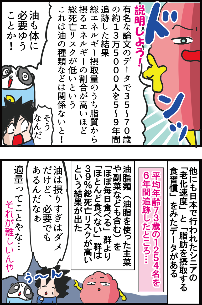 しかし、本当の健康長寿は油の種類に関係なくたくさん摂っているとのこと‥。