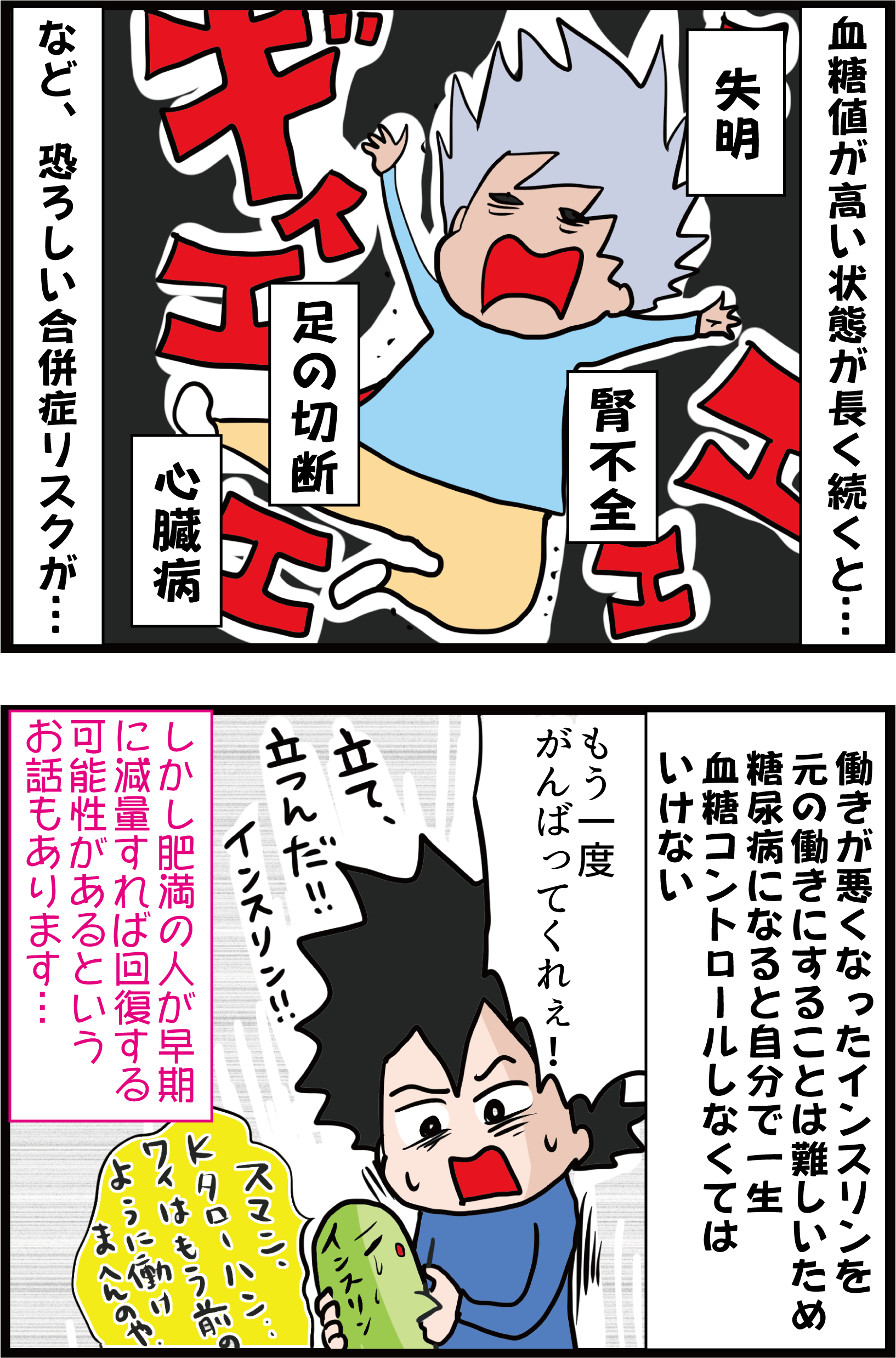 インスリンが増えたわけじゃないから食事療法と運動を夏までとりあえずやってといわれ、治療を免れてます。
