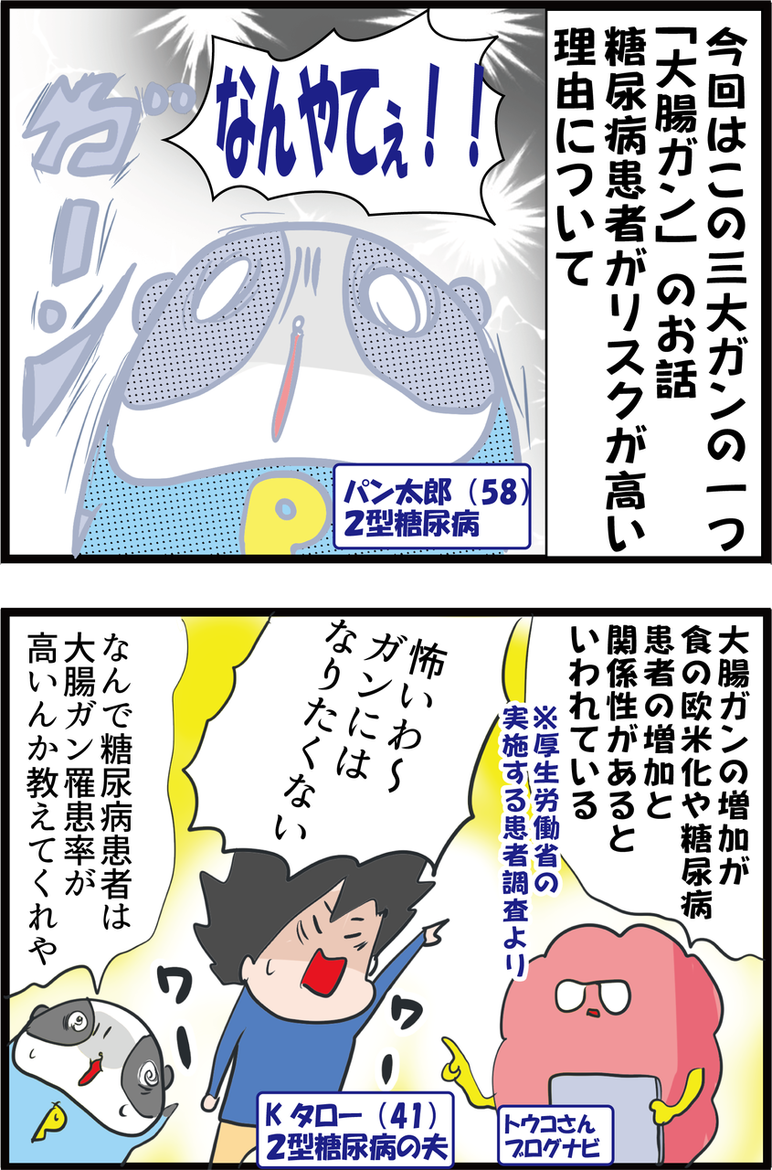 糖尿病でなくても、大腸ガンを予防する為にそういった食事を摂るようにしないといけないなぁと思いました。