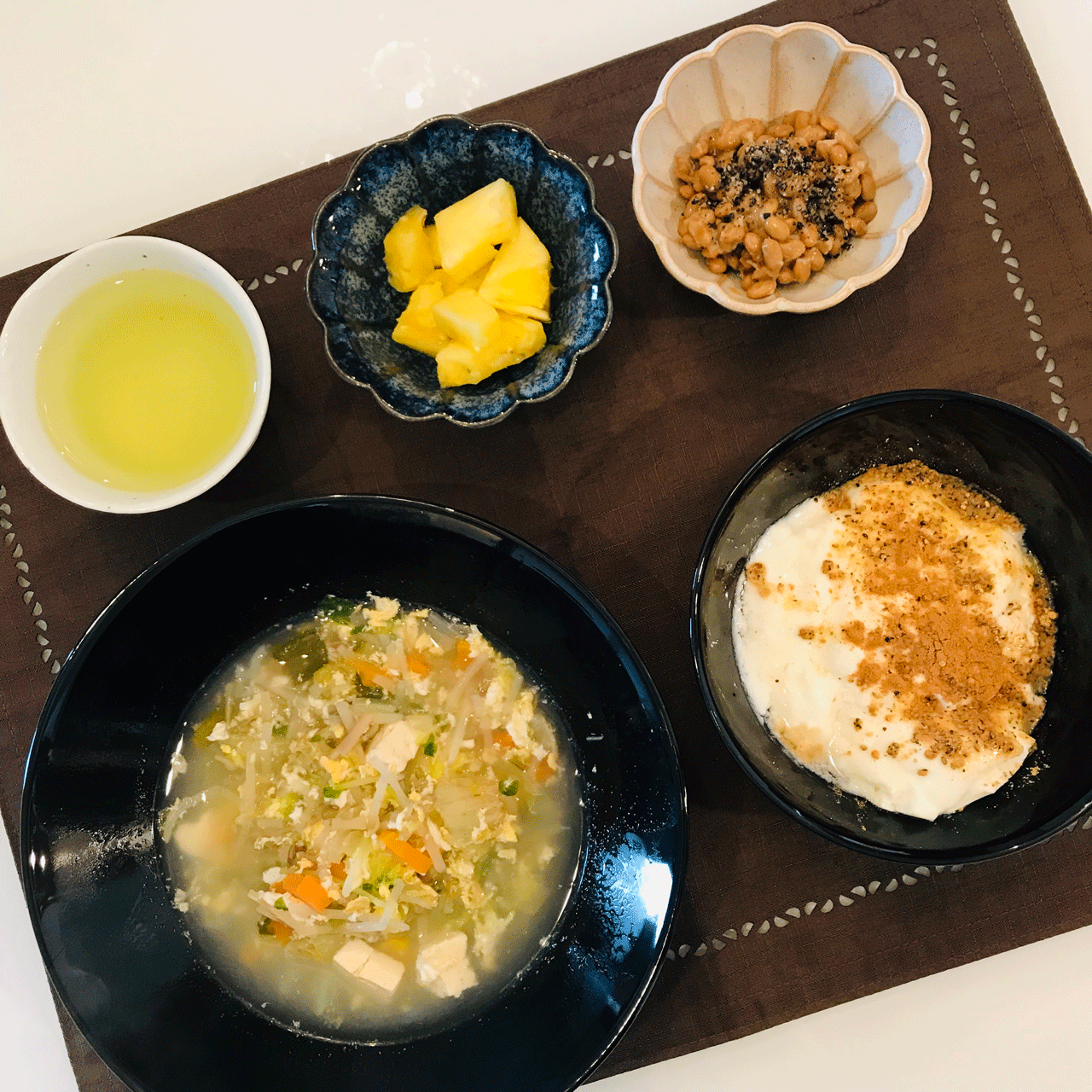 ・オートミール(ヨーグルト、きな粉、シナモンがけ)※食べる前に無脂肪乳かけてます