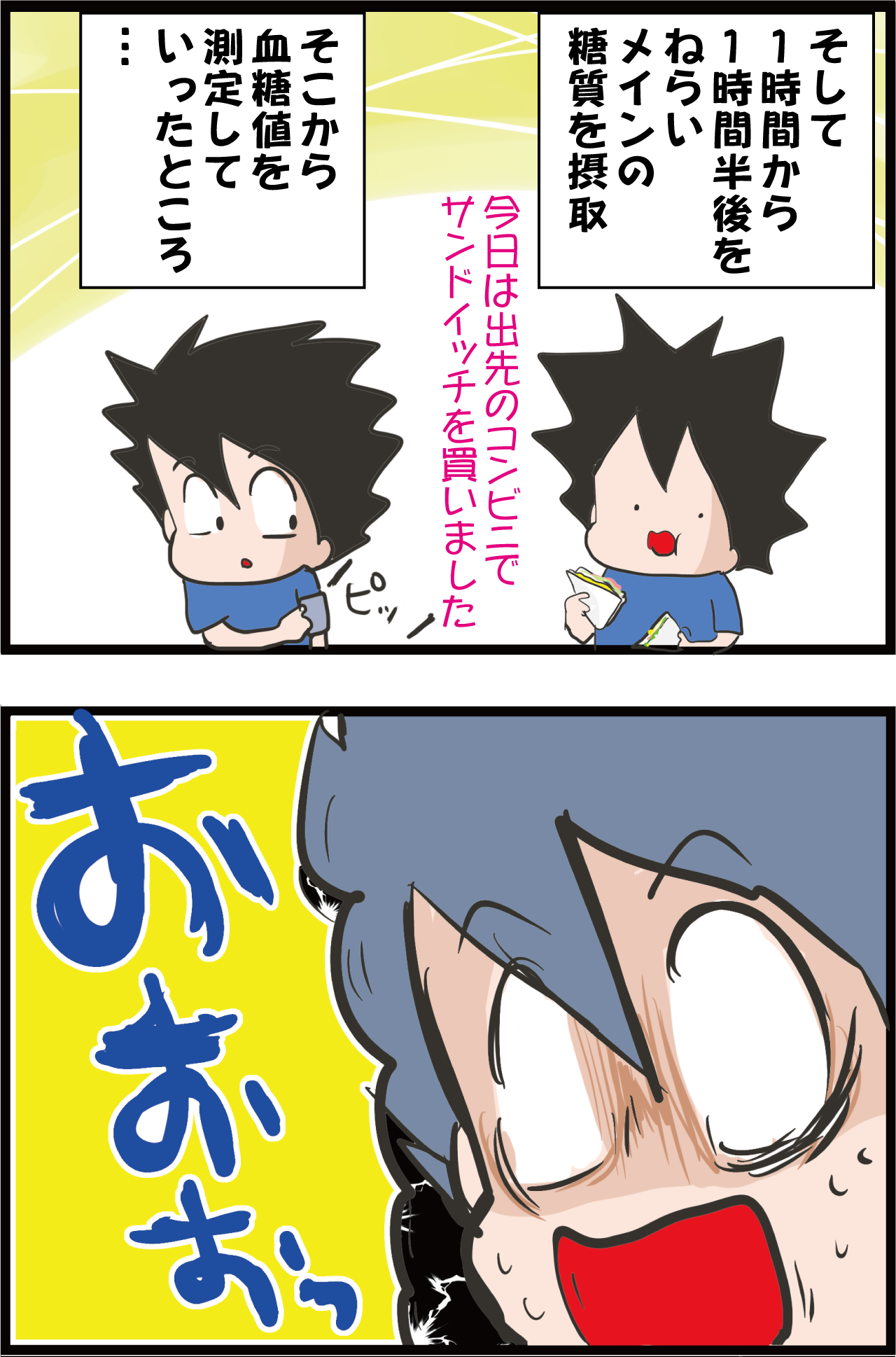 あと、もし実験的な事が可能なら、キツめの運動した直後の糖質摂取と血糖値の変動も調べていただけたらと。