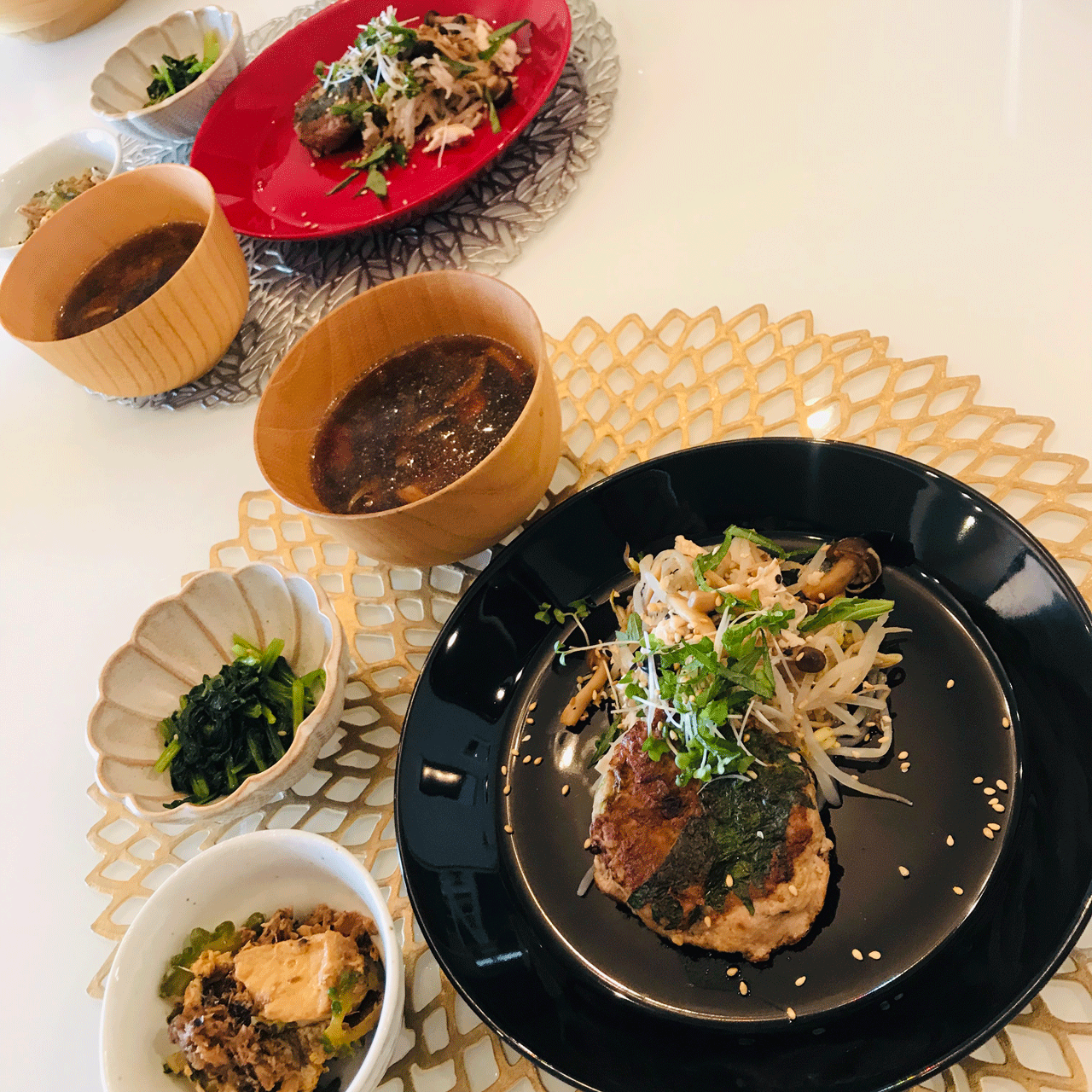 私も今日はササミが少し入った豆腐ハンバーグ作りました。