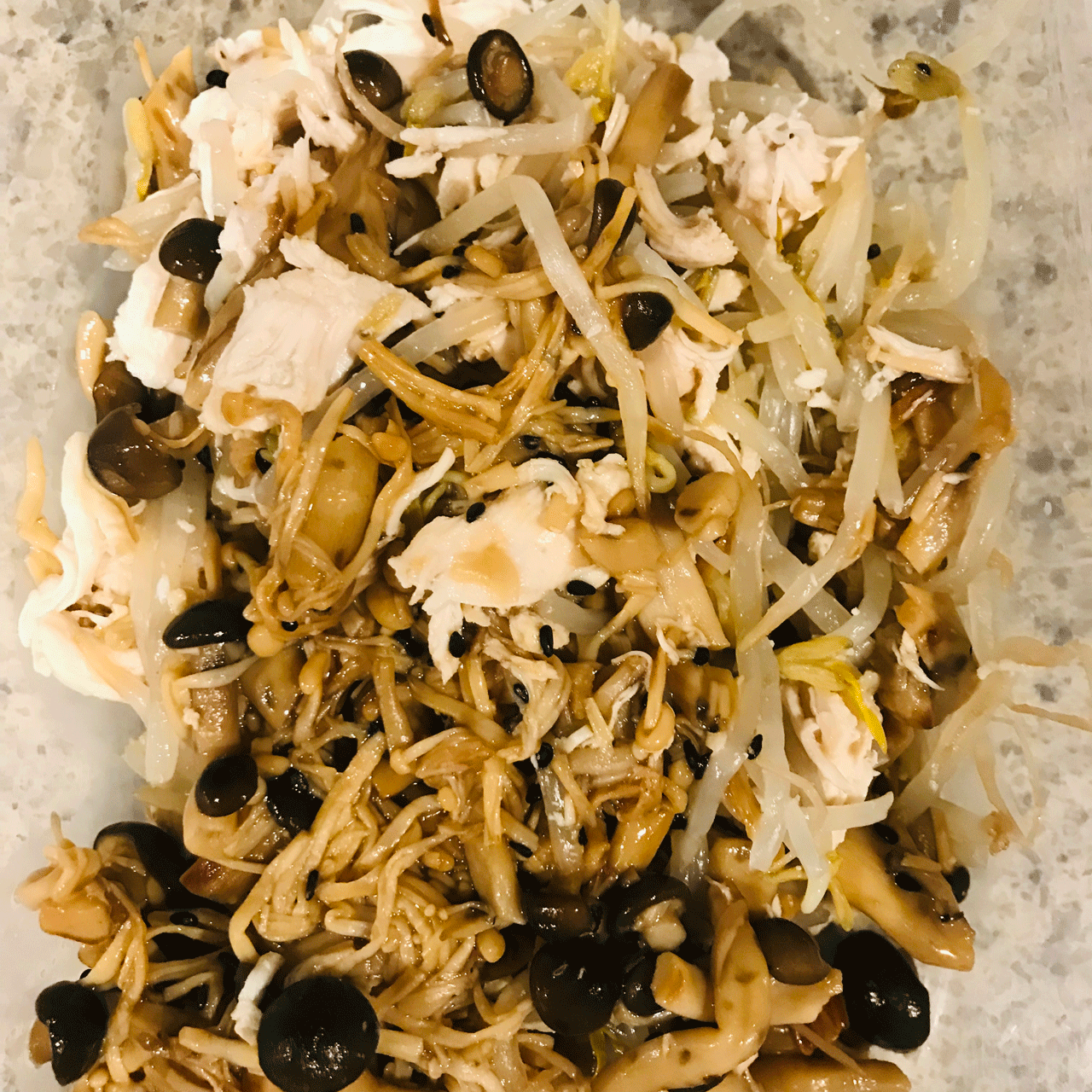 ↓ささみ、もやし、キノコのサラダのレシピ