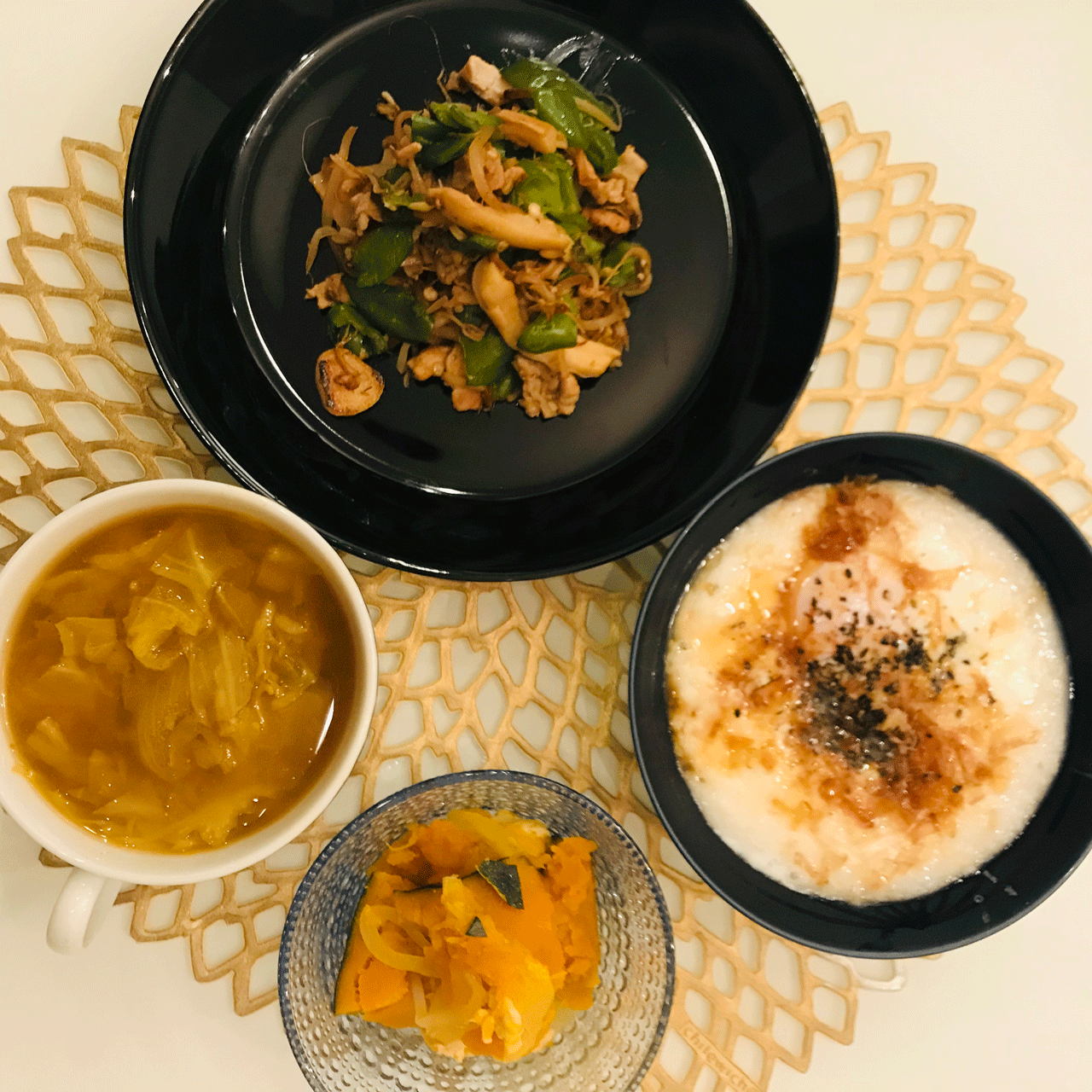 ・カレースープ(カレースパイス、白出汁、キャベツ、タマネギ)