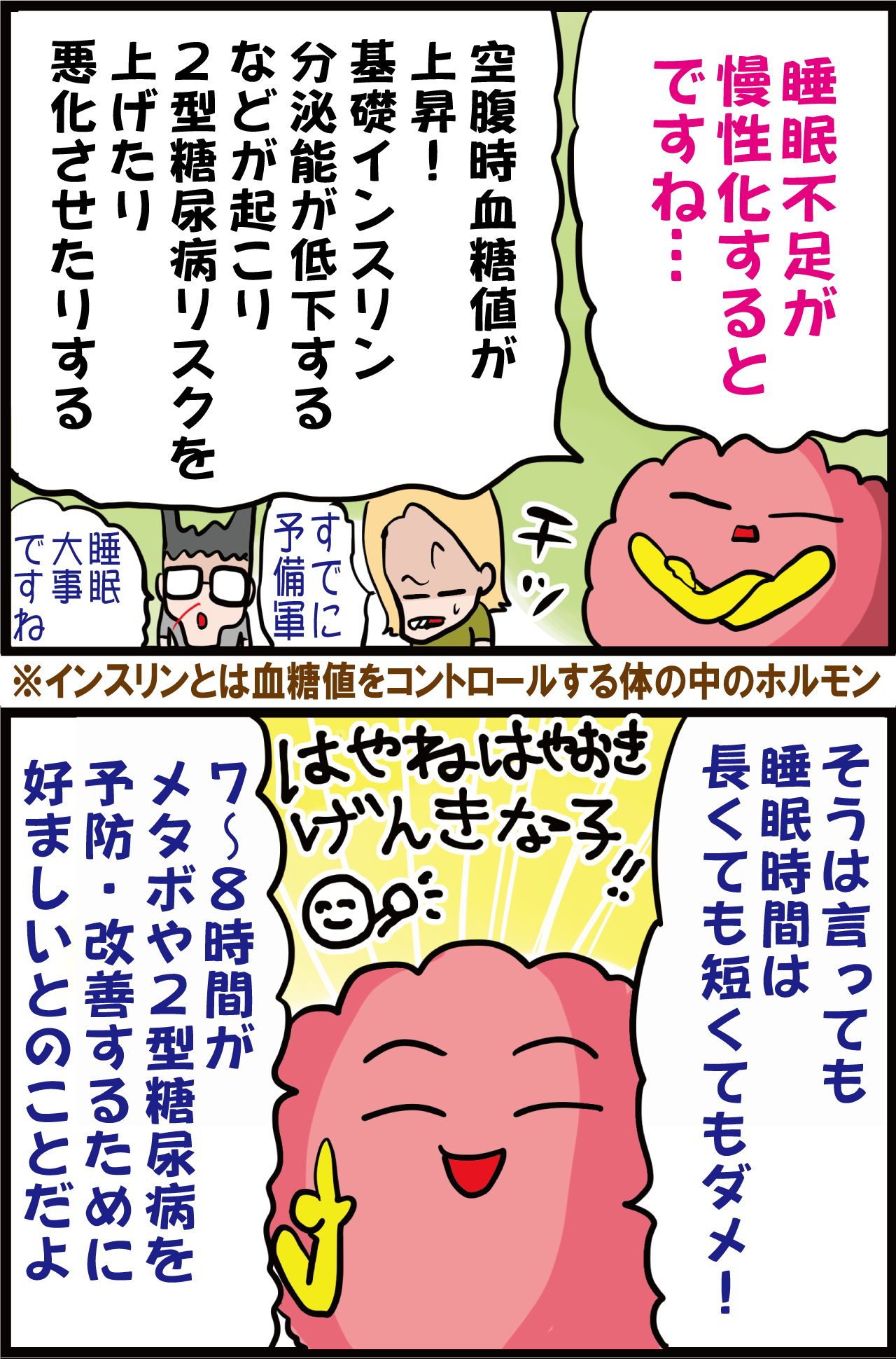 血糖値が正常な人でも睡眠不足が続けば、空腹時血糖値が上がり、インスリン抵抗性が出ていたというデータがあるんですよね。