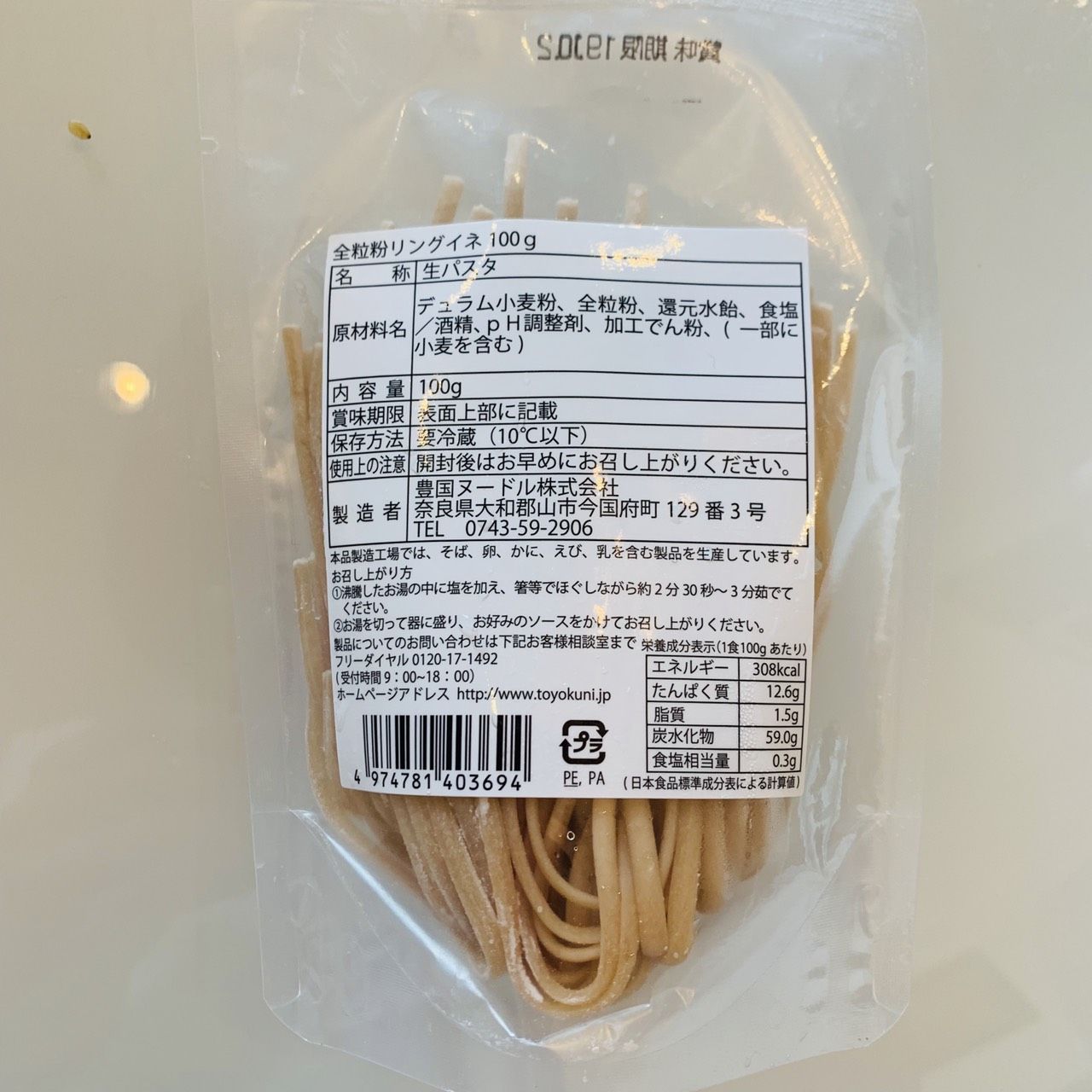 全粒粉生パスタ(リングイネ)はスーパーで200円くらいで売っていたもの