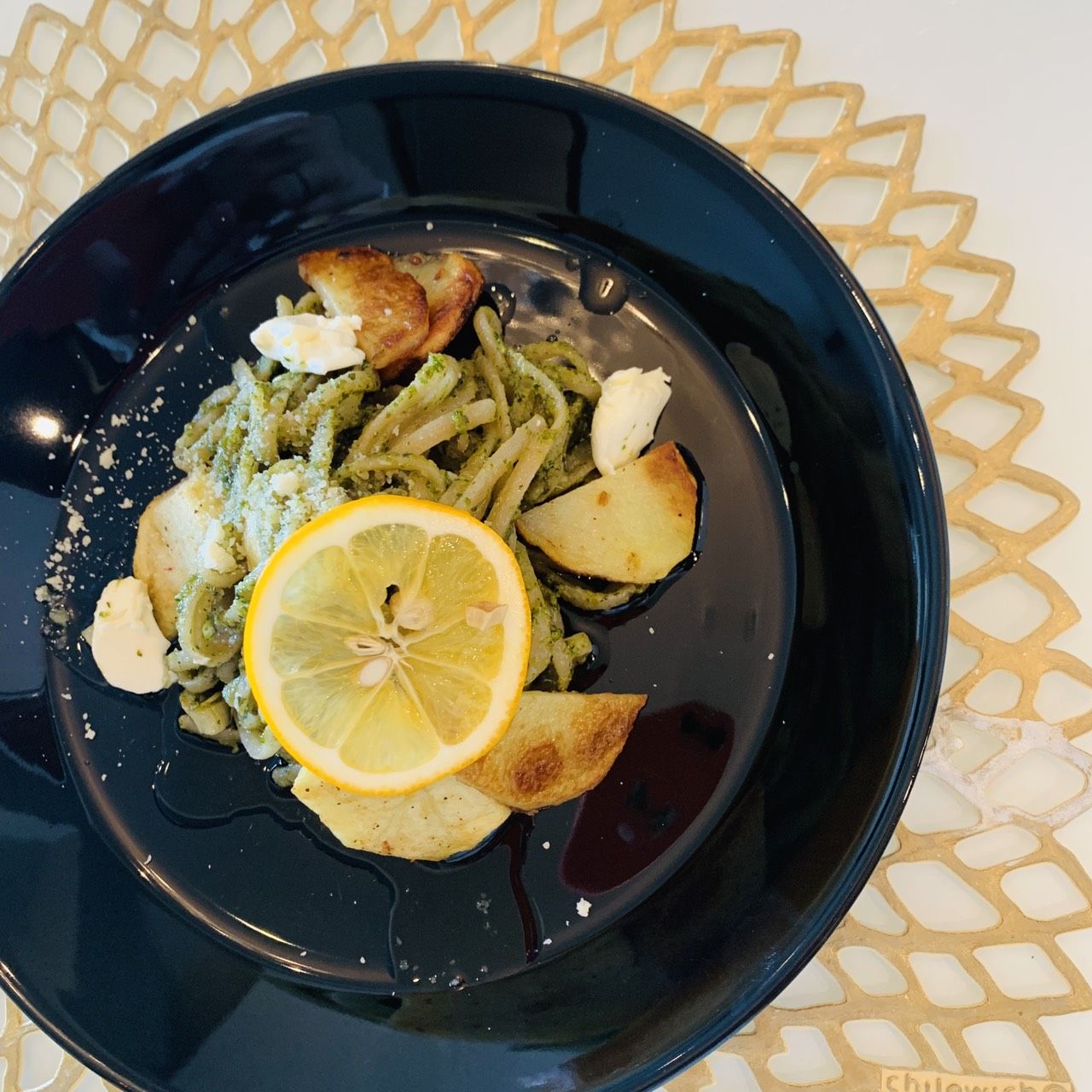 こないだバジルの葉で作ったジェノベソースを使いました。