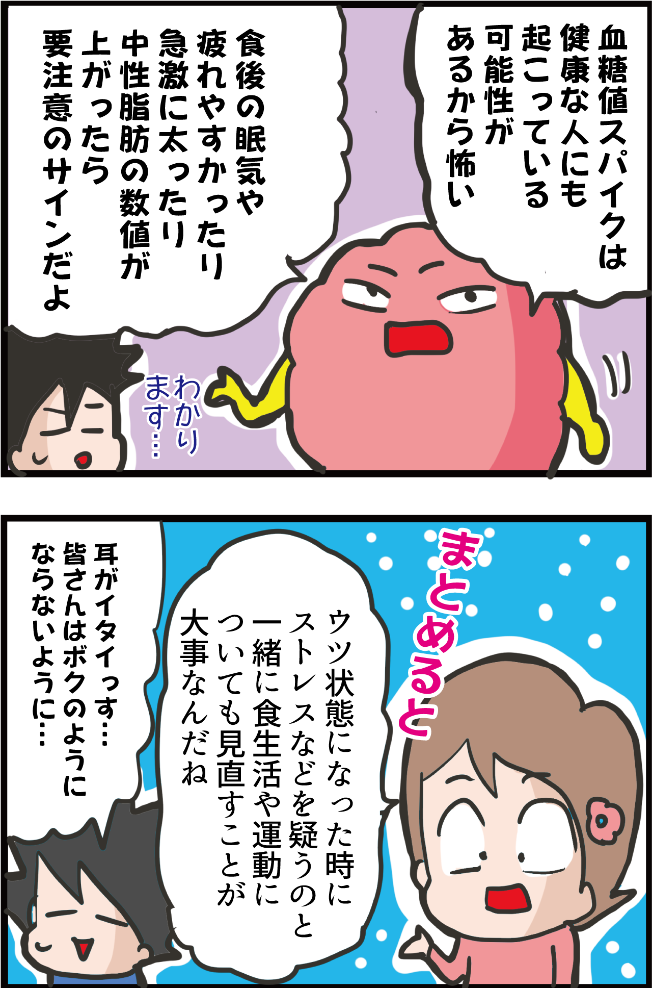 何となく血糖値スパイクのせいかな〜と思ってました。ブログ読んでやっぱり!と思いました。