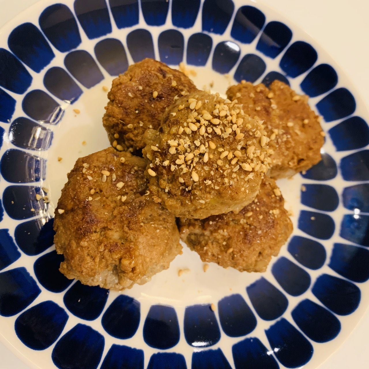 ソースはしょうゆ大さじ2、みりん大さじ1、ラカント大さじ1混ぜて甘辛味にしました。