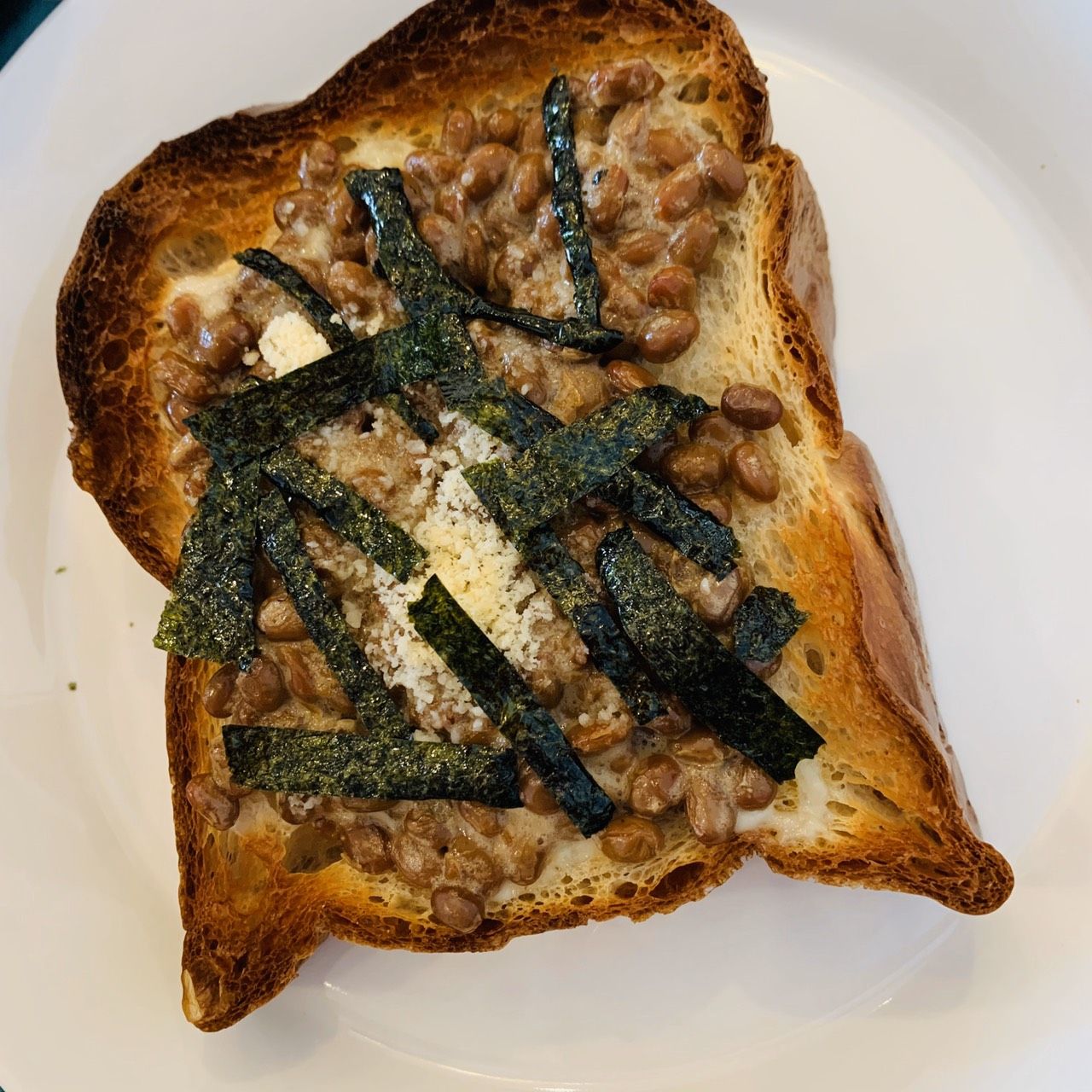 納豆トーストいいですねー🍞トッピングの海苔が決めてでウルトラC😁