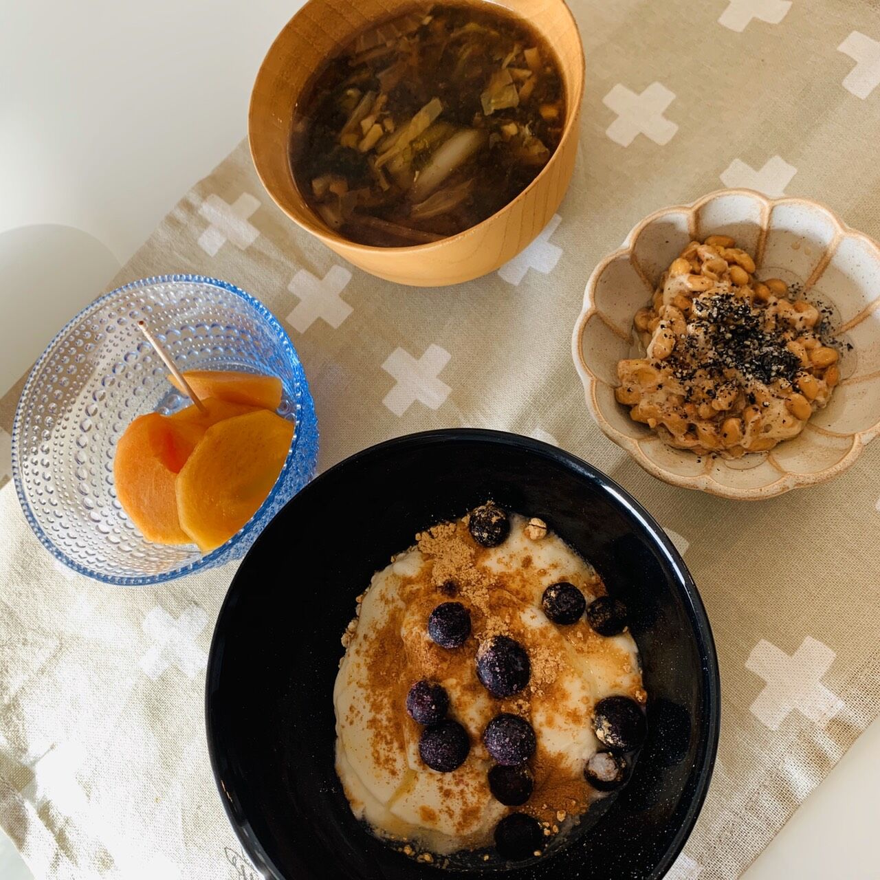 ・オートミール30g(ヨーグルト、シナモン、きな粉、ブルーベリー入り)