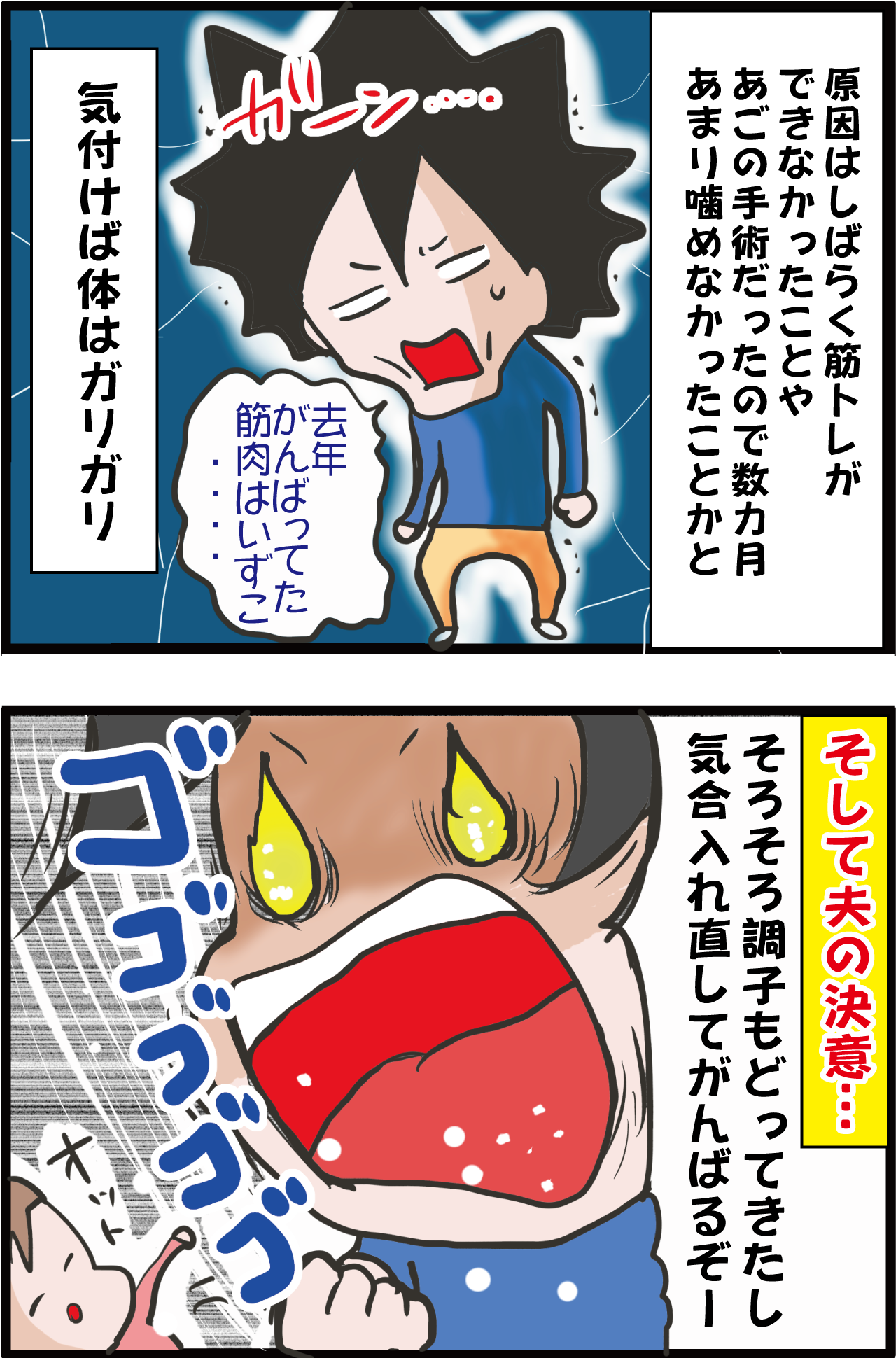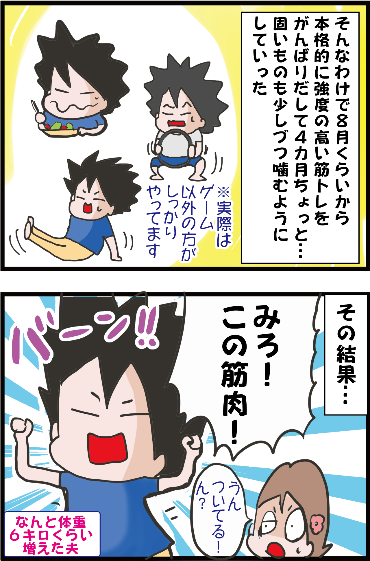 後は、高強度の筋トレを再開したのと、しっかり噛んで食べることに意識しました。