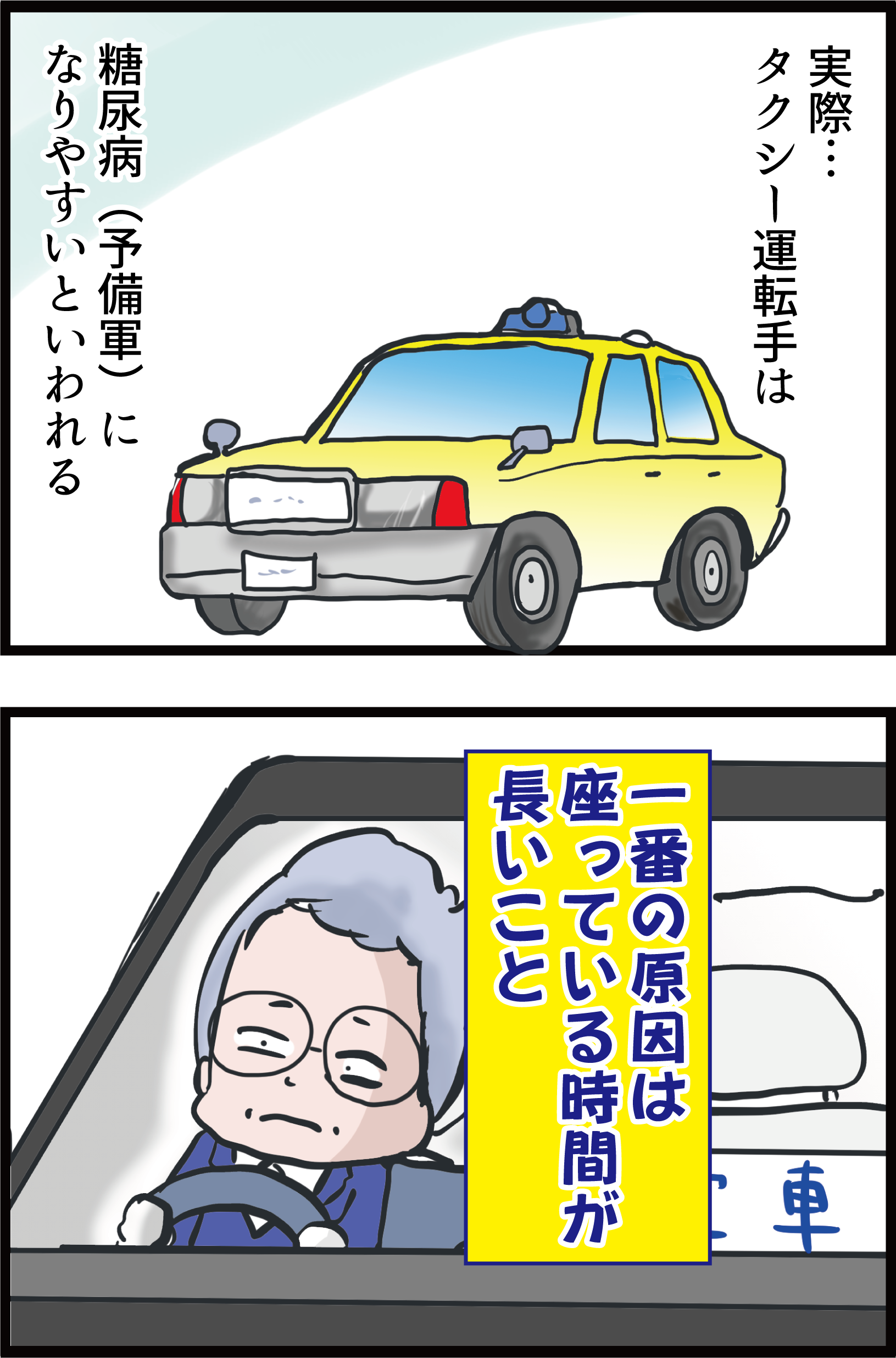タクシーの運転手さんは糖尿病に気を付けた方がいいようです。。