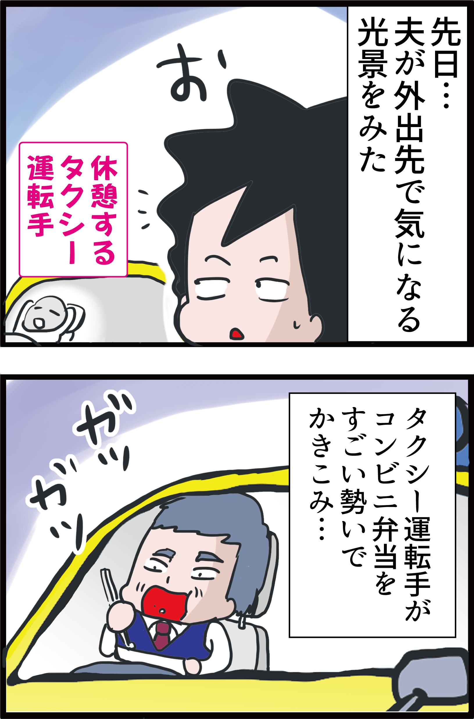 タクシーの運転手さん。確かに。昼はウドン屋で見かけたりしますしね。