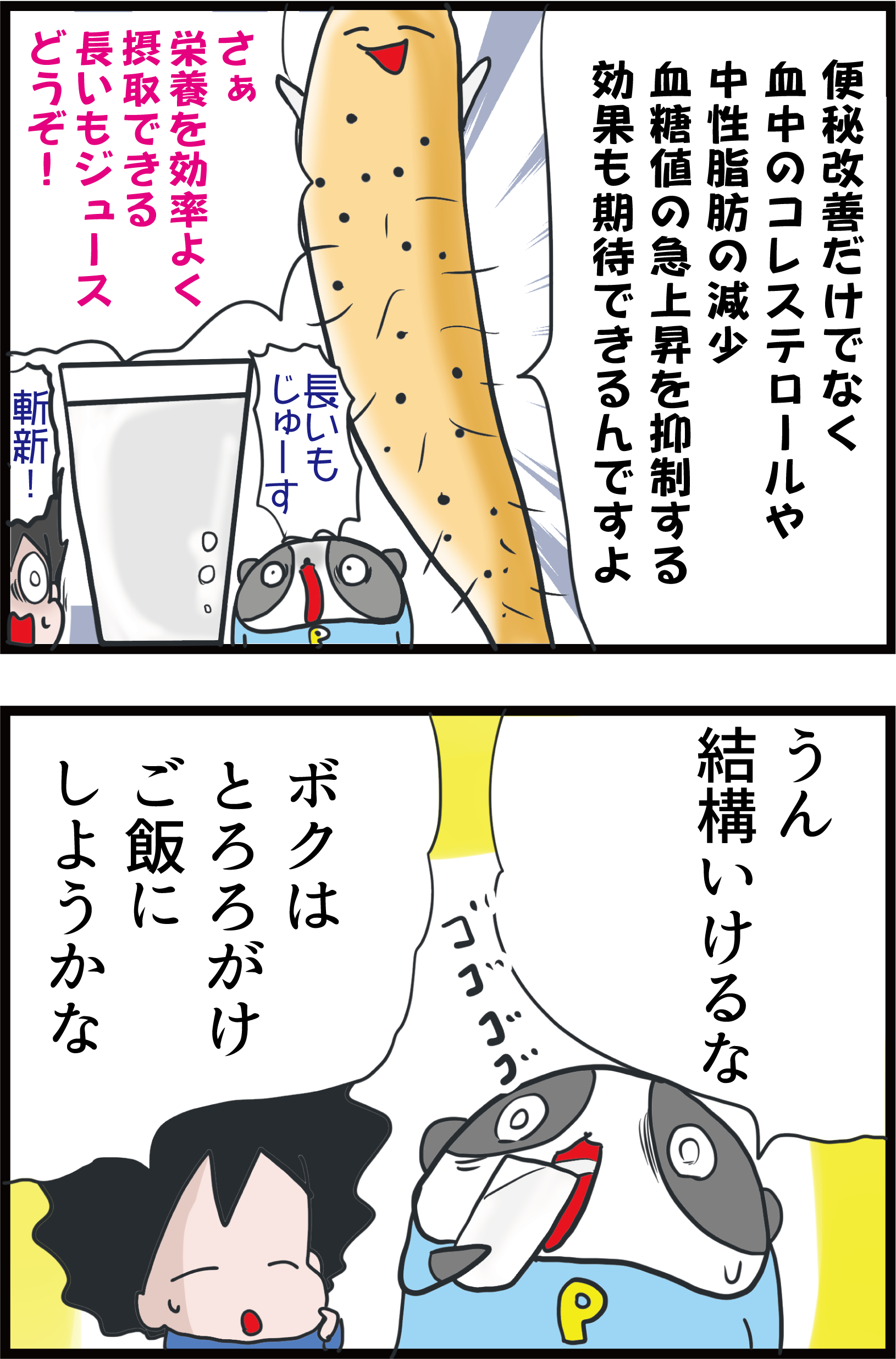ながいも、生食がよいのですね。焼いたのも好きやけど。生は歯応えがよいですよね。皮をむいてビニール袋に入れて荒く叩き潰したのに味付めかぶを合わせて食べるのが好きです。食感が包丁で切ったのより楽しい!納豆食べるんやったら納豆と合わせても。