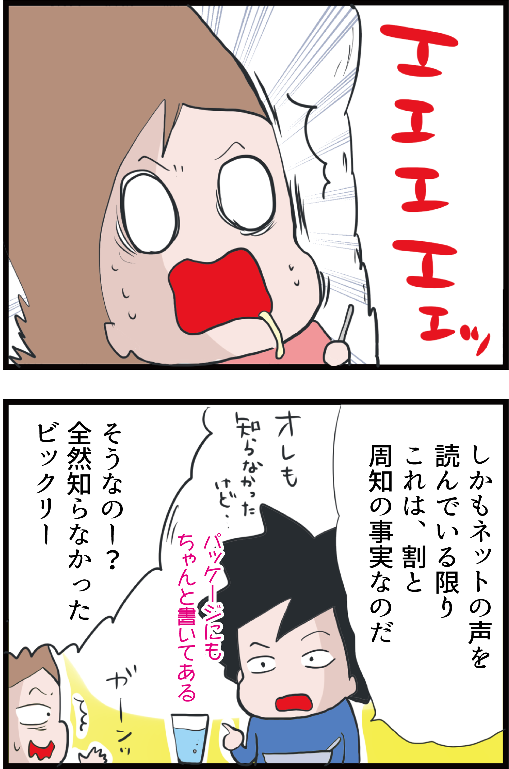 ただ、危険性うんぬんではないですが、自分の口から入れるものは当然体の中に入っていくので、もっとパッケージなどをしっかりみて理解しておく必要性は感じました。