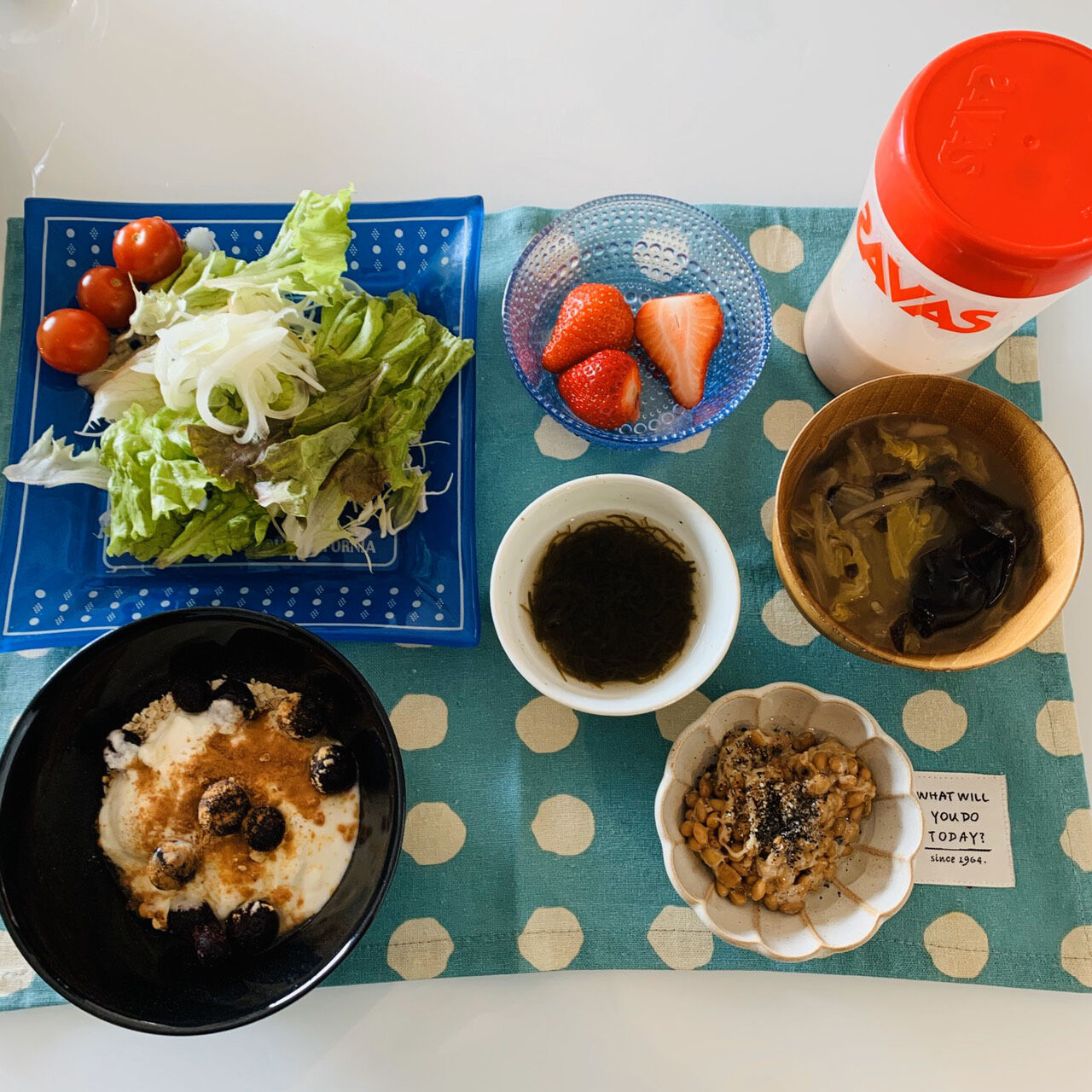 オートミール(きな粉、ブルーベリー、シナモン、ヨーグルトがけ)