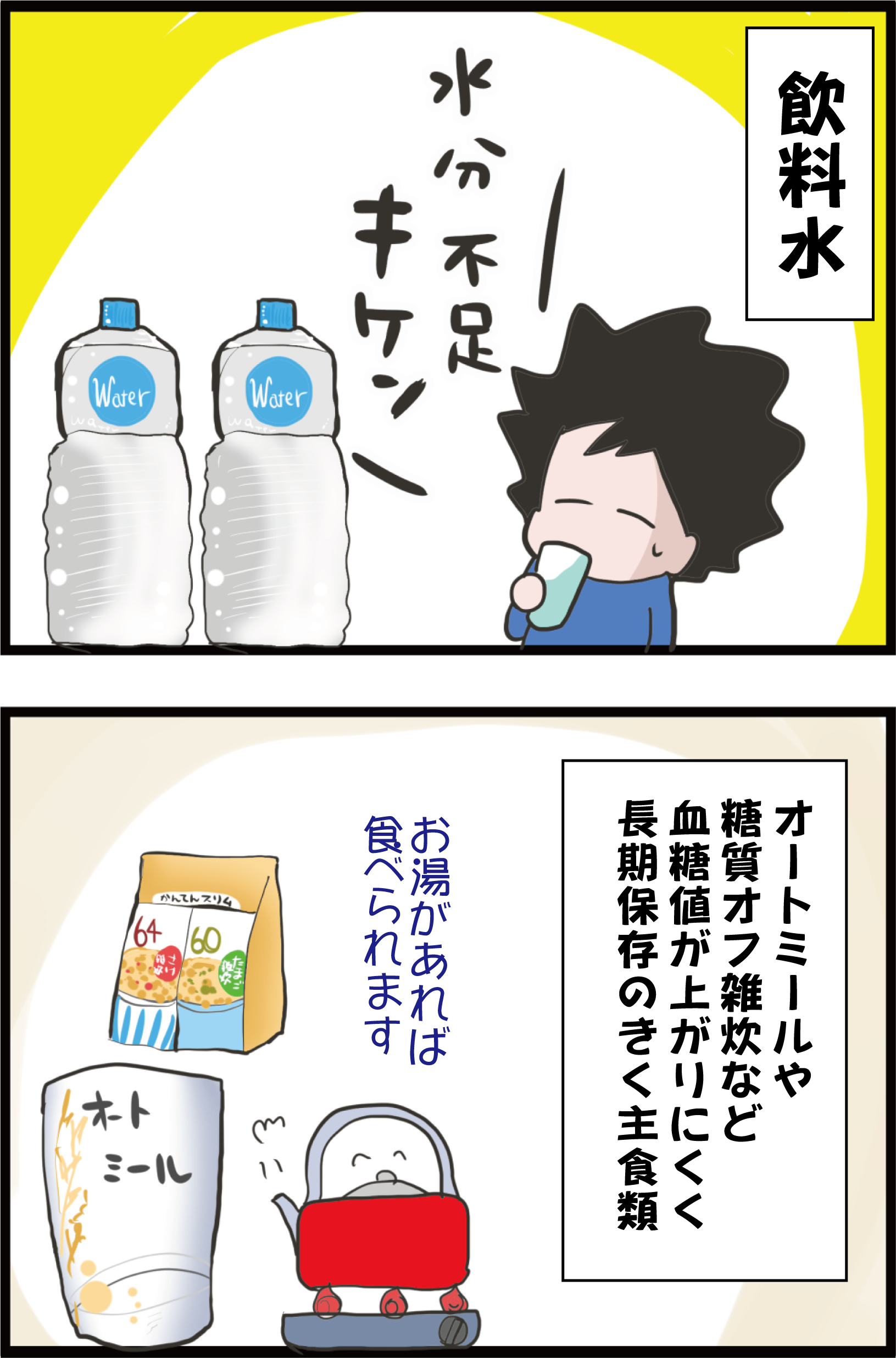 後、水やお茶などもいつも家に置いてます。