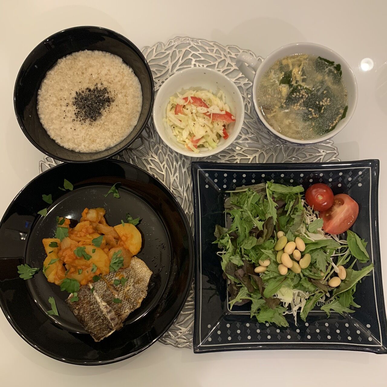 ・サラダ(ベビーリーフ、キャベツ、トマト、大豆)