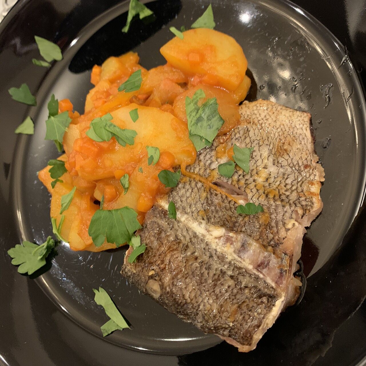 ・めばると根菜のカレートマト煮添え