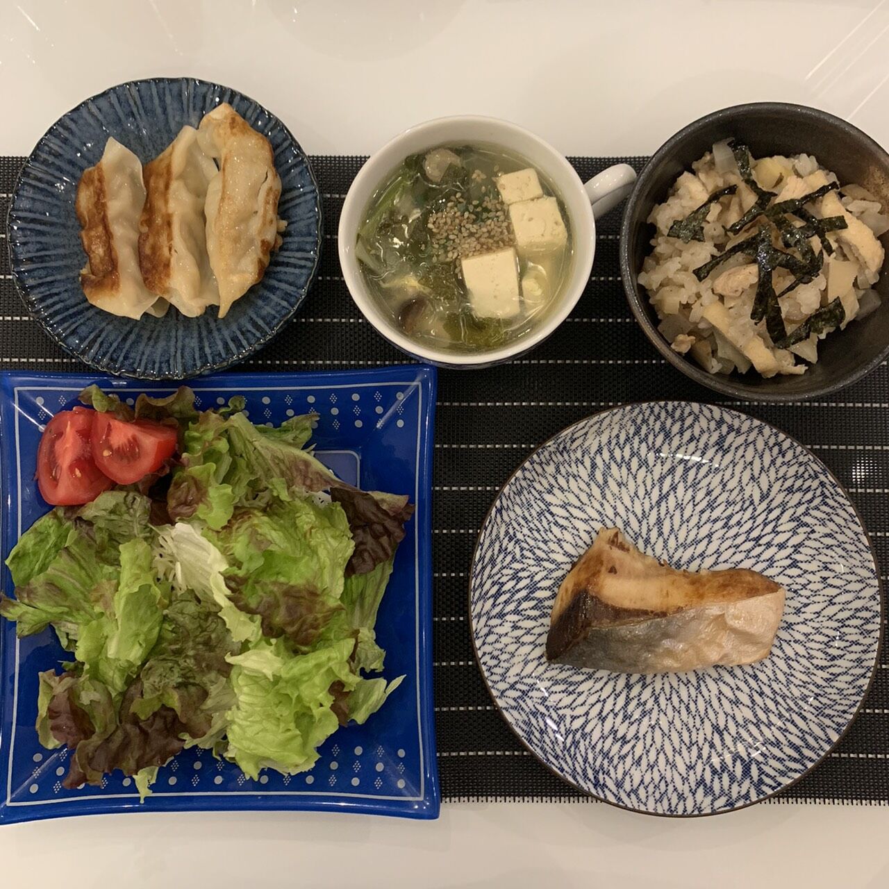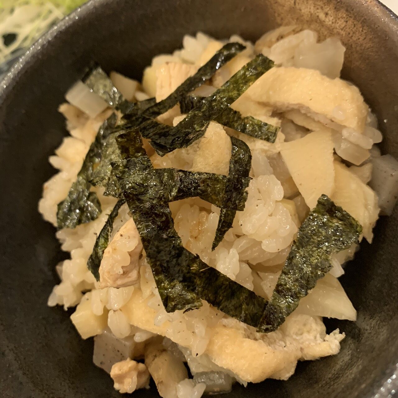 ・野菜たっぷり炊き込みご飯(たけのこ、ごぼう、しめじ、舞茸、薄揚げ、鶏むね肉、大根、コンニャク、海苔)
