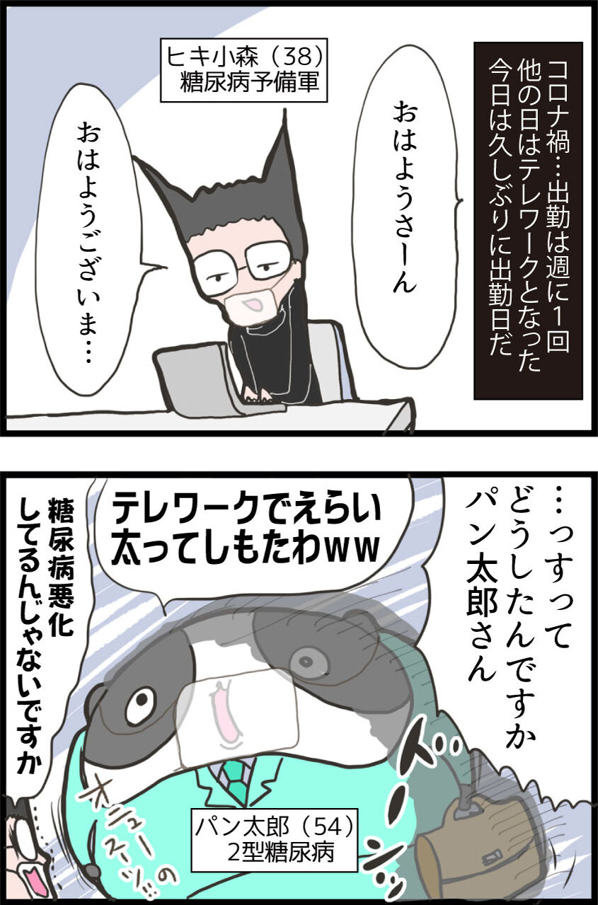 夫も自営業になり、会社に出勤しなくなってから糖尿病予備軍から糖尿病になりました。