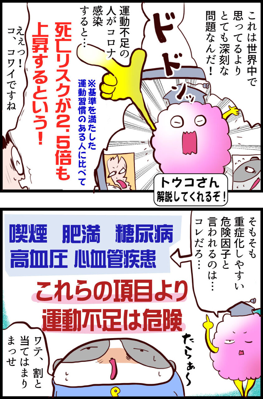 糖尿病などの基礎疾患より重症化リスクを上げてしまうのはなんと「運動不足」なんです。。。