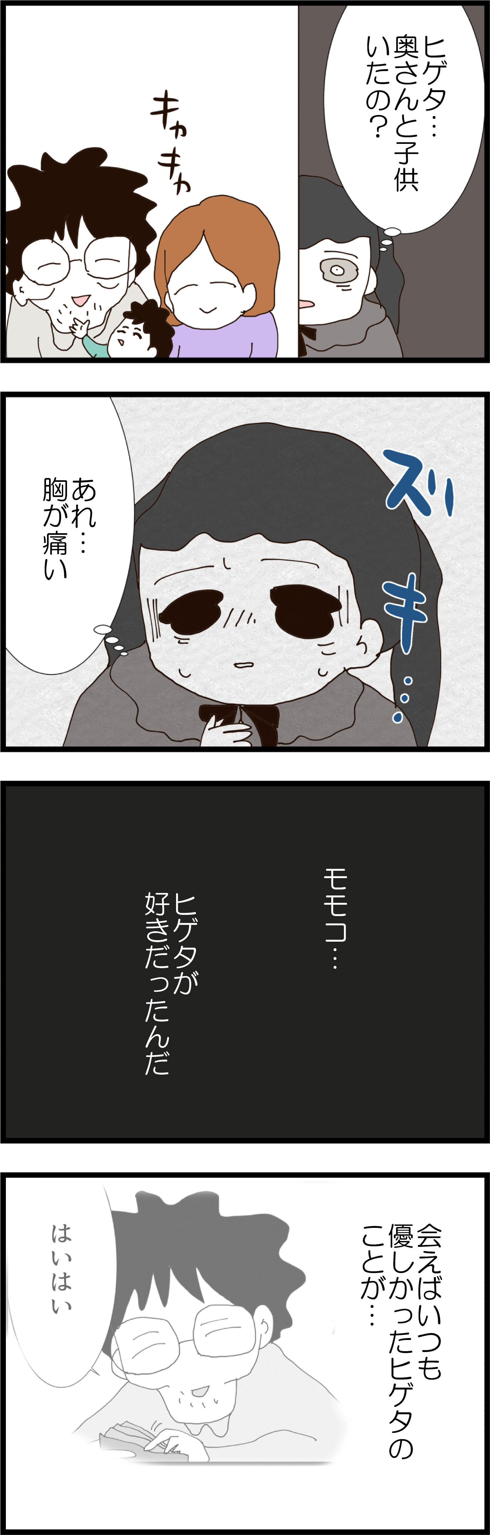 義妹は推し活シングルマザー【167】 2023年11月19日 ↓最初から読む ↓前回のお話 続き この話の一覧はこちら↓続きを読む方はLINEの更新通知がおすすめ! ↓kindle・楽天Kobo・ピッコマ・コミックシーモア・LINEマンガ などなどで配信中!描きおろしも入ってます♪ 【こちら↓も現在連載中です!】 ~書籍販売しています♪~ ▽重版決定▽6刷いきました(#^.^#) アマゾン、楽天で販売中! 「義妹は推し活シングルマザー」カテゴリの最新記事 「読者様体験談」カテゴリの最新記事 タグ :#漫画#コミックエッセイ#義妹#推し < 前の記事次の記事 > コメント コメント一覧 (5) 1. これは 2023年11月19日 08:22 ヒゲタの妻子ではなくて妹と甥っ子とかってパターンか? 0 danna-tonyo がしました 2. そうだね😃 2023年11月19日 09:13 >>1 その可能性を信じたい! 0 danna-tonyo がしました 3. 「。」改めて(´ω`) 2023年11月19日 10:38 ケーキ5個に笑ってしまった🤣 しかも「いつもみたいに食べないの?」って聞いてくれるヒゲタが優しい。 0 danna-tonyo がしました 4. ななしのなな子 2023年11月19日 15:26 失恋して傷心のモモコにクズの男が寄ってきて結婚したのかな? 0 danna-tonyo がしました 5. ココア 2023年11月19日 21:16 ぽっちゃり女子が好きなおっさんに騙されたの?モモコかわいそう😭 0 danna-tonyo がしました コメントフォーム 名前 コメント 記事の評価 リセット リセット 顔 星 情報を記憶 コメントを投稿する