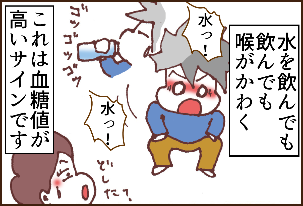 以前、糖尿病の初期症状の時にお話しましたが、のどがすごく乾いているのは血糖値が高いせいなんです