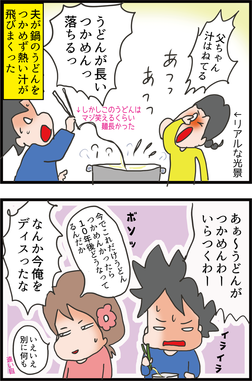 けど、夫本人は至って真剣につかめないうどんに怒っていた(笑)