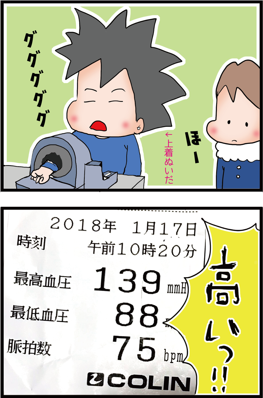 夫のいつもの血圧は120ないくらいらしく、検査結果が出る前だったので不安だったよう