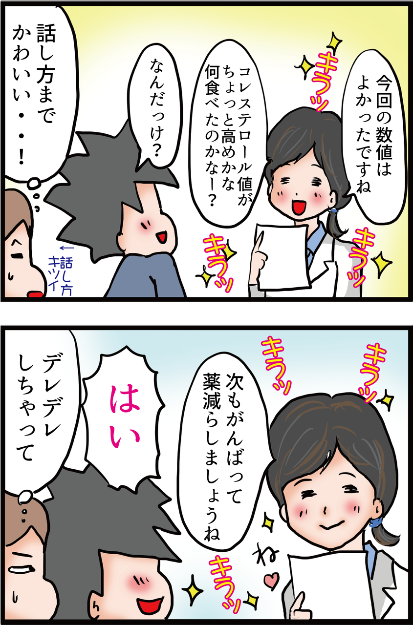 2カ月に1回の糖尿病検診(その2)~カワユス女医にデレデレ夫~ 2018年01月19日 ↓LINEで更新情報をお届けします♪ むしろ、数値がよかった事が私も嬉しかったです(笑)しかし先生かわいかった~頭がよくて優しいなんて最強ですね(笑)私もそんな素敵な女性になりたい・・ってもう遅いか・・・ ↓初めてご訪問の方はこちらもどうぞ↓ブログ村参加してます!夫の病気が治るようにポチお願いします! にほんブログ村↓もう一個マルコを応援!!ポチッお願いします! 「検査結果」カテゴリの最新記事 「糖尿病」カテゴリの最新記事 タグ :#診察#女医 < 前の記事次の記事 > コメント コメント一覧 (8) 1. moco 2018年01月19日 16:00 カワユスな女医さん担当なんて旦那さま ラッキーですね♪ なんか最近の若いお医者さんって男女問わず 美形な人が多い気がします(^o^) なんか山Pやガッキー達のドラマな世界が リアルにある~!…とキラキラした彼等が 眩しかったです 頭も良くて見た目もいいなんて最強過ぎる! 2. ヒナカナパパ 2018年01月19日 18:50 まぁ〜〜治療に対して前向きになれるなら… って事で マルコさんも大目に見てあげているんですね。^_^ 男なんて単純で頑張る理由なんて そんなもんですよ。 ちなみに私の主治医は70代のお爺さんです。 3. マルコ 2018年01月20日 01:33 >mocoさん 夫、ラッキーでしょう(笑) それで癒されてたらいいなと思います♪ 私はかなりの鬼嫁なんで(笑) 確かに最近見た目がいいお医者様が増えてるような・・ そんな人に生まれたかったな~(;^ω^) 4. マルコ 2018年01月20日 01:35 >ヒナカナパパさん 70代のお爺さん・・! なかなかのベテランさんでそれはそれで頼もしいですね! その方にチクッと言われたんですね~!(笑) 5. ろんり~うるふ 2018年01月20日 04:36 おはようございます。 天は二物を与えるんですね。 羨ましいです。 でも、旦那さんが病院へ行く楽しみ?になれば良いですよね。 6. 500円 2018年01月20日 13:58 待ち時間も長く嫌な思いしかない病院で1つでも楽しい事があると気分も上がって良いことだと思います。 (≧▽≦) うちの旦那が行ってる病院に可愛い名前の女医さんがいて(白鳥 萌【仮名】)この先生のネームプレートが掛かってる部屋の前で この先生に呼ばれろ…呼ばれろ…と念を送っていた去年の旦那(゜_゜;) 今年も呼ばれる気配はありませんが 私も気になって気になって… 絶対可愛い先生でありますように(^_^;) 7. マルコ 2018年01月21日 01:28 >ろんり~うるふさん こんにちは(^^♪ ホント、「天は二物を与える」ですね! うらやましいです! 病院へ行くのってやっぱり気が重いと思うので少しは楽しくなってくれればうれしいです♪ 8. マルコ 2018年01月21日 01:34 >500円さん 可愛い名前の女医さん、気になりますね~(^^♪ 旦那様が念を送る気持ちがわかります 私も男前のお医者様がいれば、念送っちゃうかも(笑) けど、たるんだお腹を見せるのが嫌で逆にブルーになるかも・・・(汗) コメントフォーム 名前 コメント 記事の評価 リセット リセット 顔 星 情報を記憶 コメントを投稿する