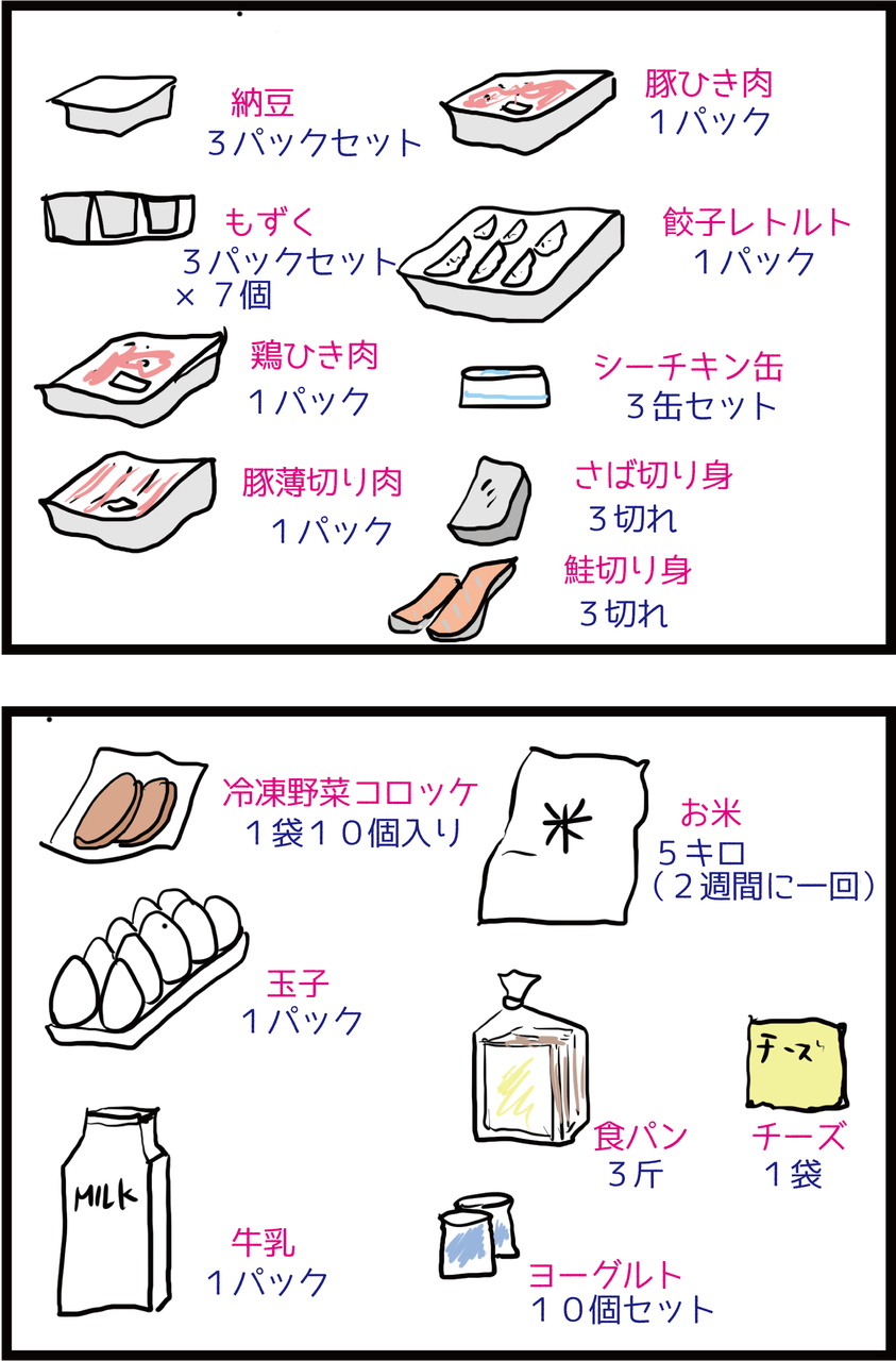 それで食費が大体1週間分で7,8千円、お米がある時は1万円くらい