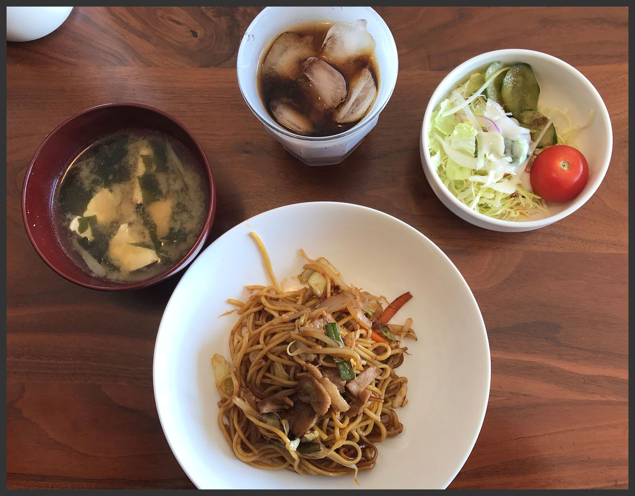サラダ(キュウリ・レタス・キャベツ・もずく・トマト・玉ねぎ)