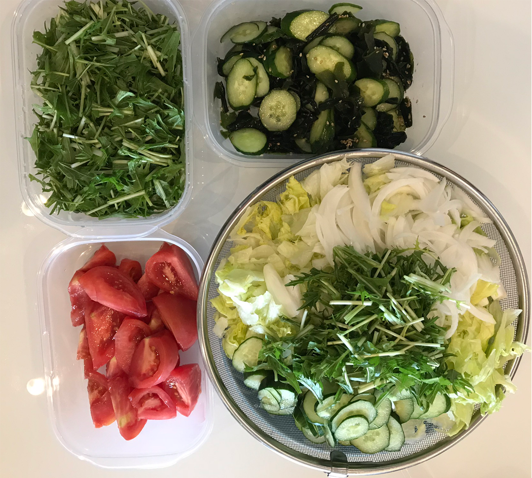 サラダ(レタス、キュウリ、玉ねぎ、キャベツ、トマト)