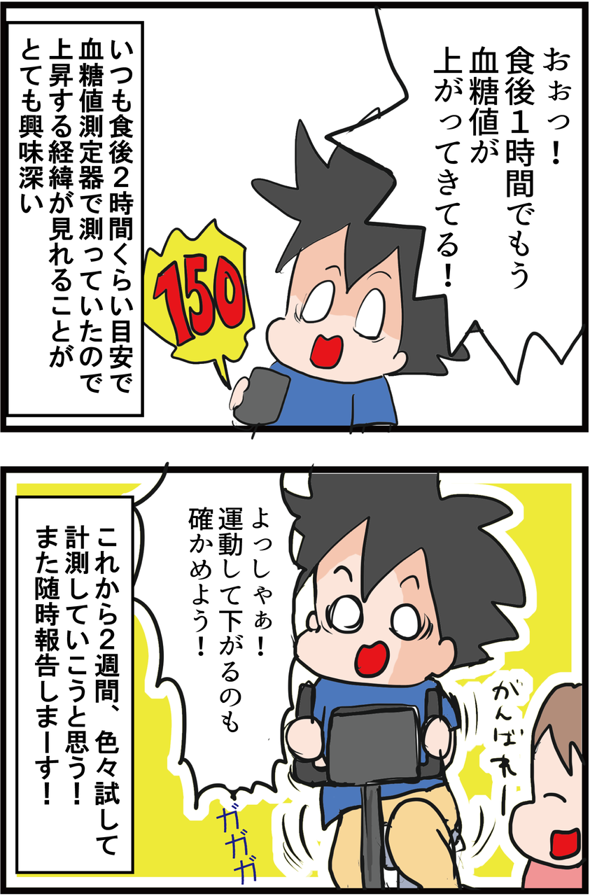 筋トレもめっちゃしてますが、血糖値は上がり、筋肉がつくまで時間がかかりそうです( ;∀;)個人差ありますね。