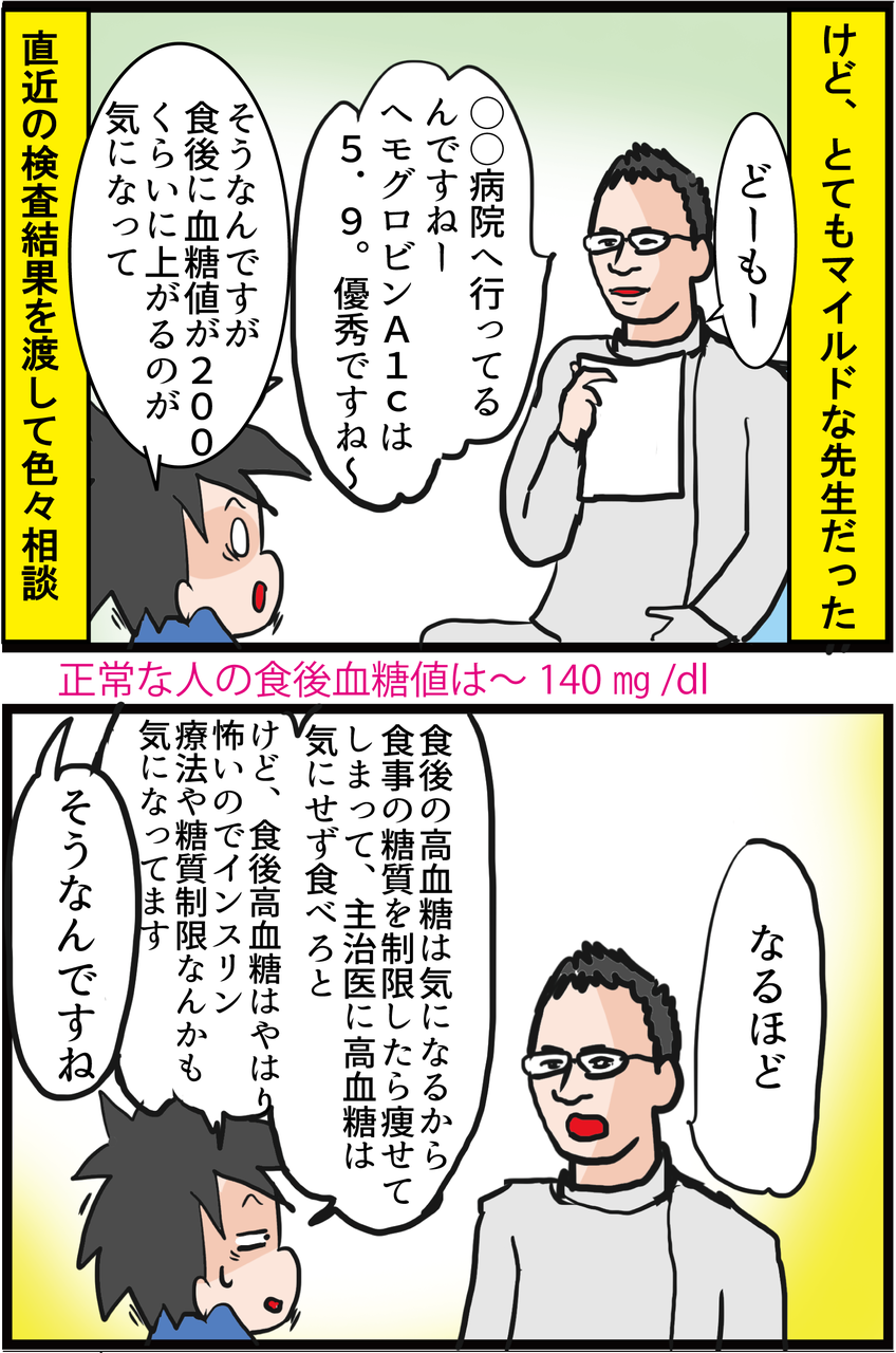 先生が言うには、先生が普段診ている患者さんに比べると、空腹時血糖も安定しているし、